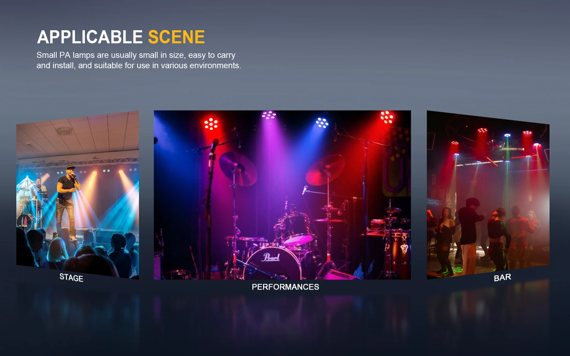 Fácil de transportar: las lámparas PA pequeñas suelen ser de tamaño pequeño, fáciles de transportar e instalar.