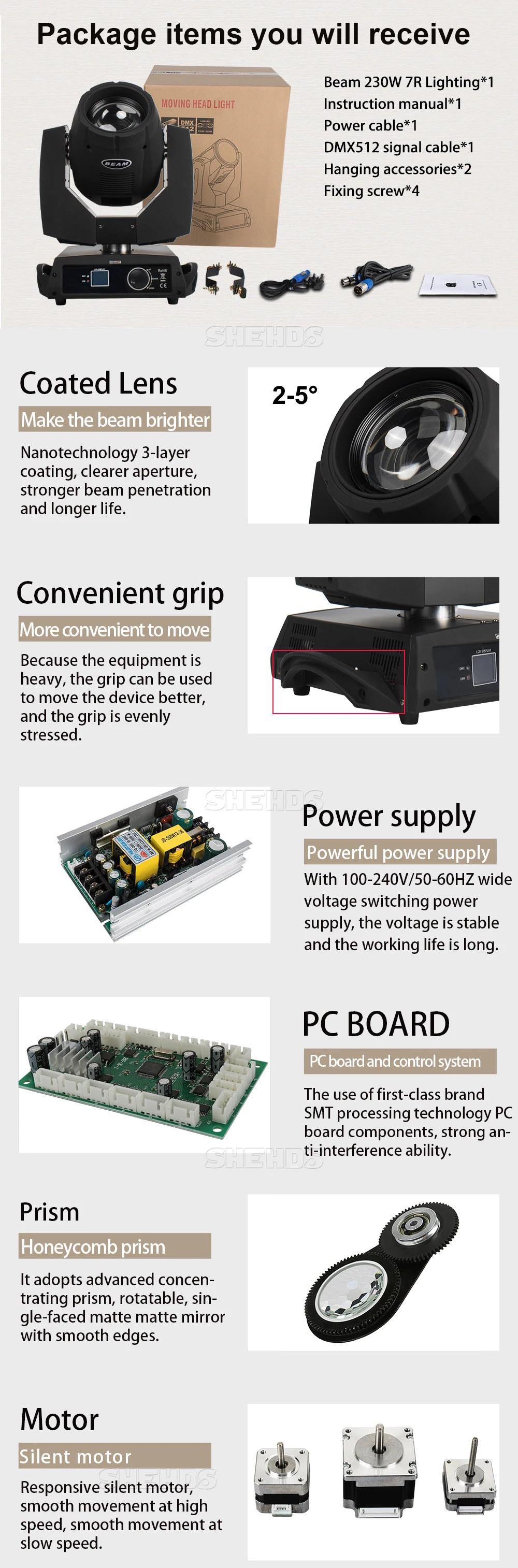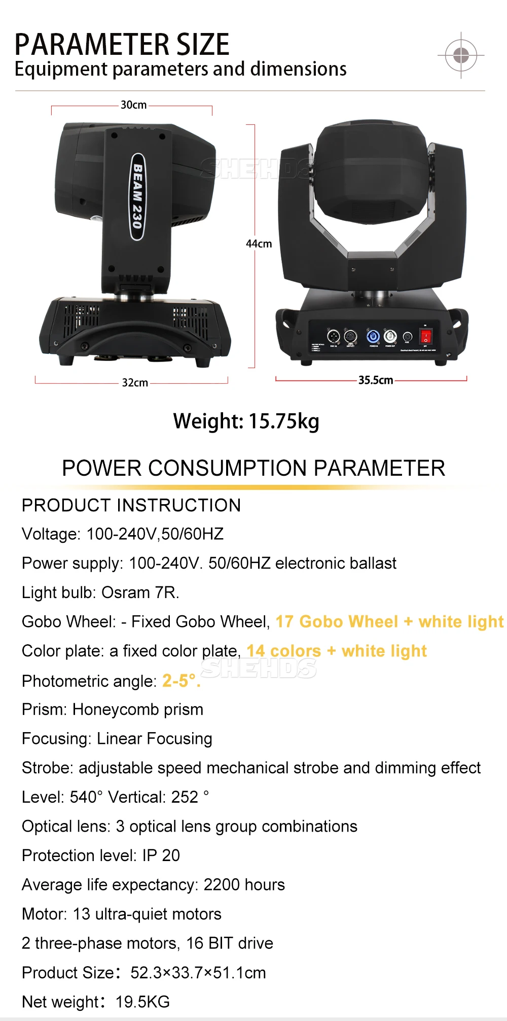 Comprar SHEHDS 7R 230W haz de luz con cabezal móvil bombilla para DJ Disco boda Bar luces de efecto de escenario