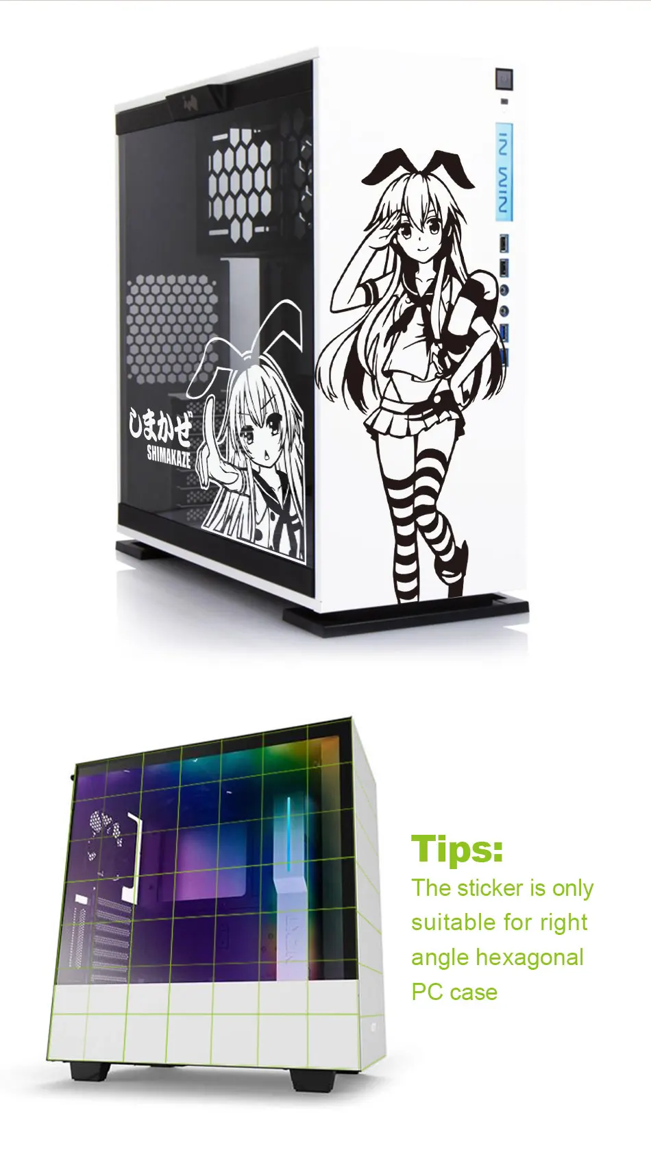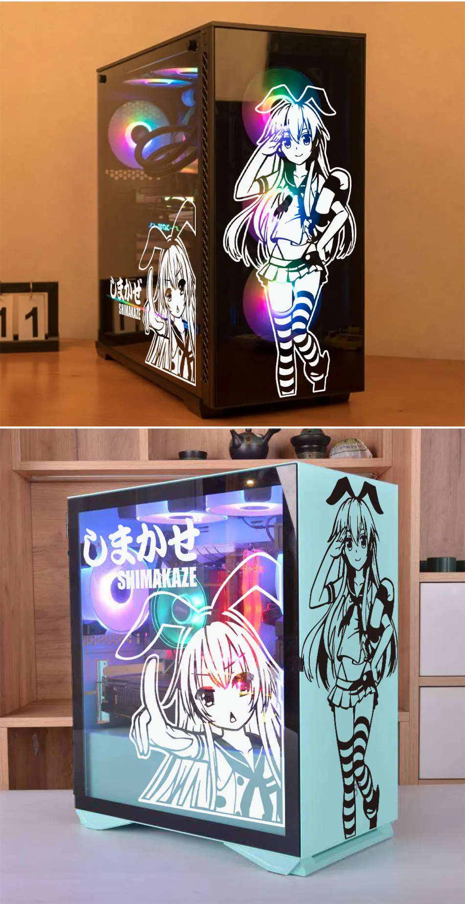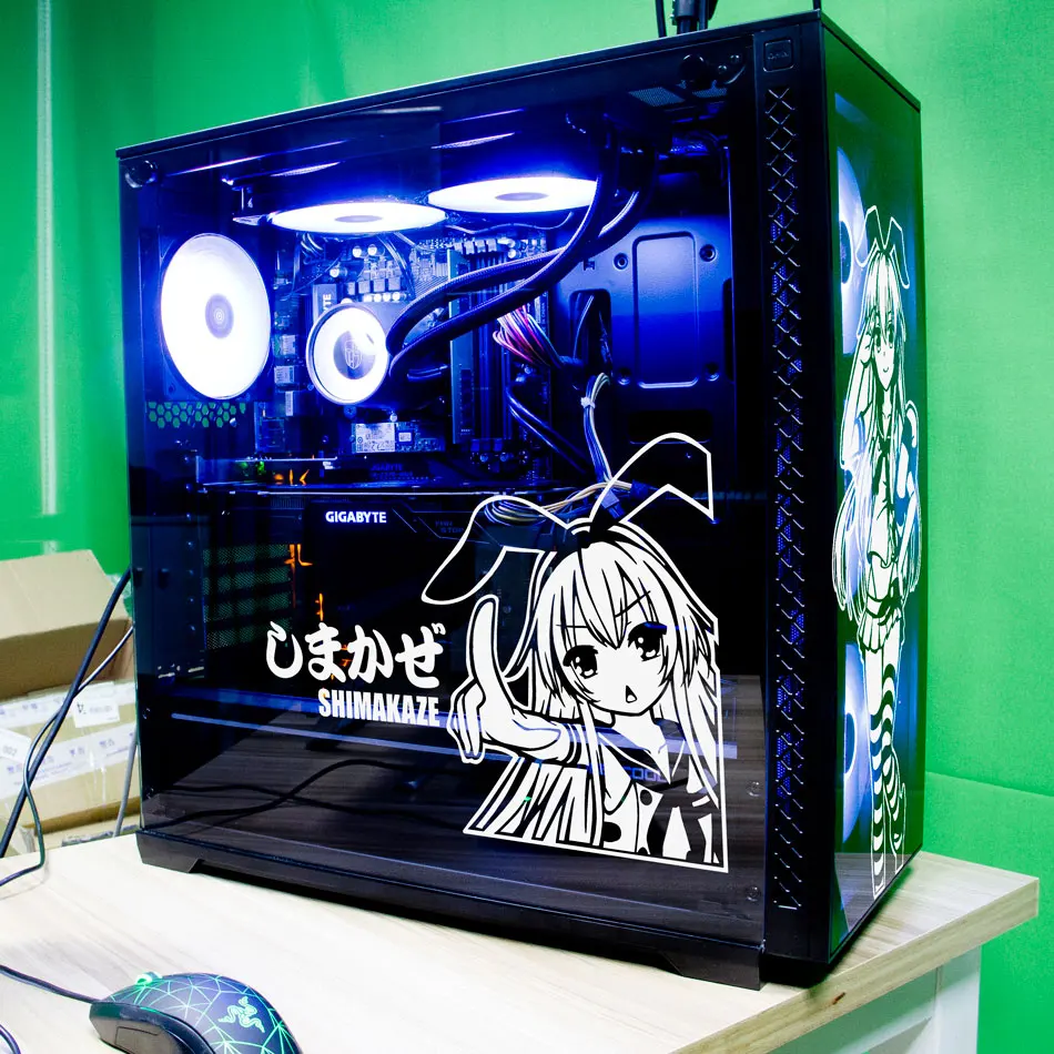 Comprar Shimakaze-pegatinas de anime para carcasa de PC, bonitas calcomanías decorativas de dibujos animados para la piel del chasis de la computadora Atx, impermeables, fáciles de quitar