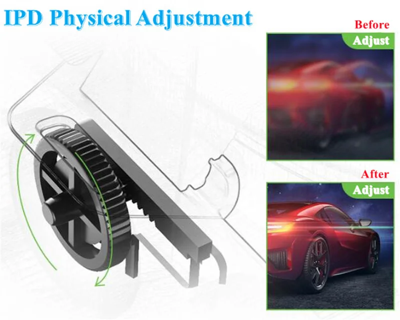 El diseño panorámico 360 te lleva a un nuevo mundo, brindándote un disfrute visual perfecto.El amplio ángulo de visión de 110 está cerca del ángulo de visión real del ojo humano.Busque juegos VR/pantalla dividida 3D u alguna otra palabra clave relacionada en Google Play o APP Store para disfrutar de un impactante efecto 3D.
