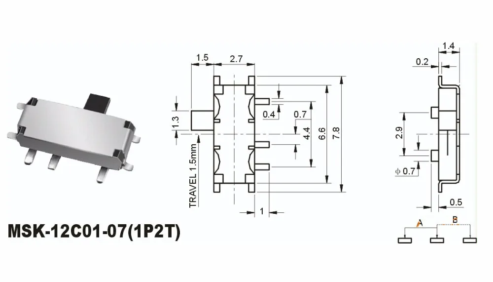 [Siete pies] kit electrónico diy Stubbs MSK-12C01-07 (1P2T) interruptor de palanca SMD (50 piezas)