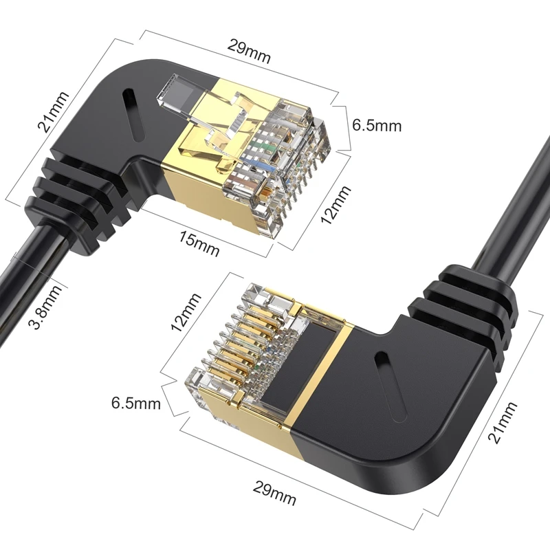 Los 90 ° El diseño de codo resuelve el problema del cableado en un espacio estrecho, utilizando conexiones de codo en las esquinas/TV/parte posterior del chasis, etc., y utilizando el espacio estrecho hábilmente para resolver el problema de que el cable de red no es fácil de enchufar.