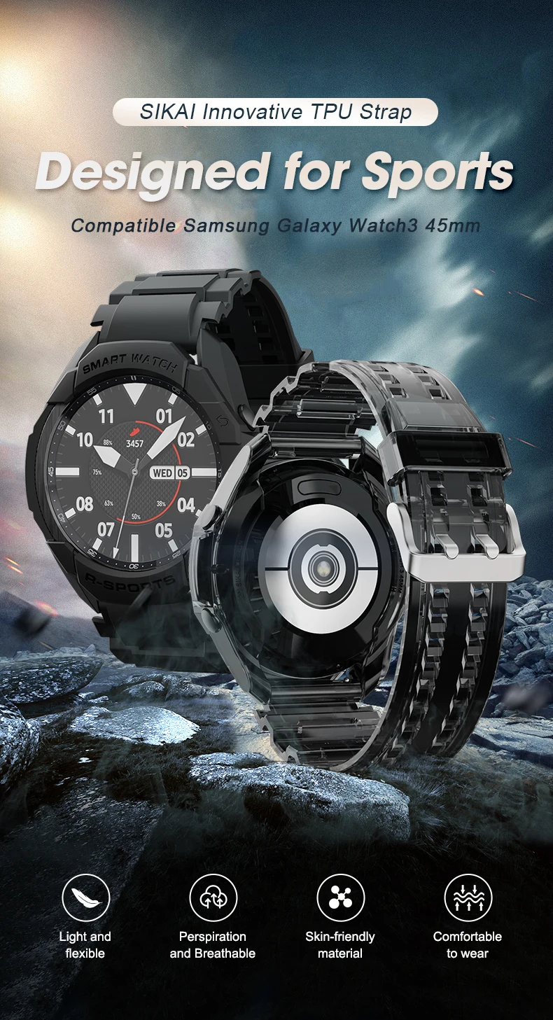 Comprar SIKAI 2021, pulsera con correa de TPU para Samsung Watch Galaxy Watch 3, funda protectora de TPU de 45mm para reloj inteligente Samsung