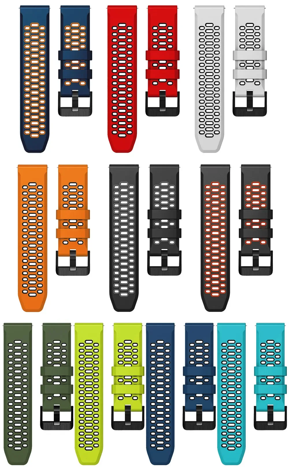 Hecho de material de alta calidad, suave y duradero.Correa de repuesto para la correa de reloj vieja o rotaLos pasadores de liberación hacen que la banda sea fácil de instalar y quitar.Fácil de ajustar la longitud para adaptarse a su muñecaEstilo de moda, perfecto para el trabajo, viajes o deportes.Material: siliconaBlanco: naranja, negro, verde, amarillo, verde militar...Tamaño de la correa: 24mmPaquete incluido: