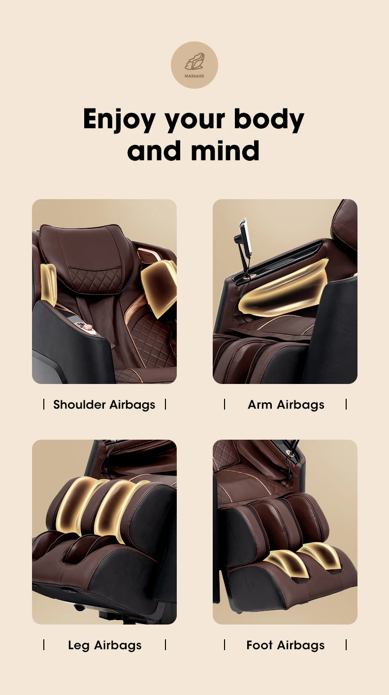 17.Masaje de airbags: hombro, brazo, pierna, pie.