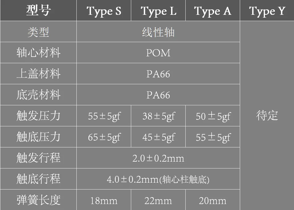 Interruptores lineales, vástago POM, carcasa superior e inferior PA66.