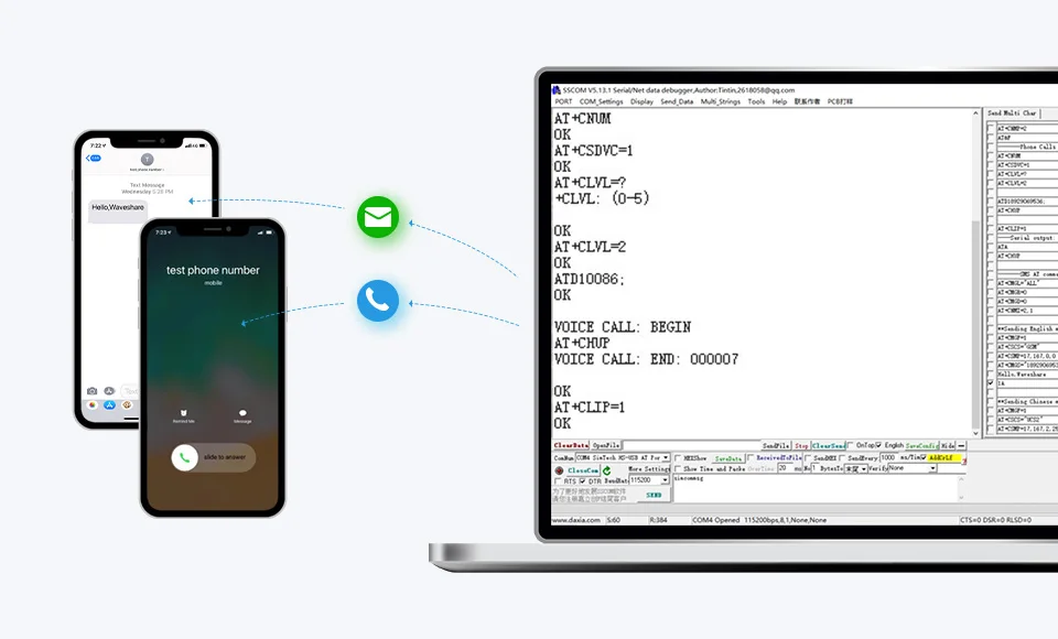 Permite utilizar comandos AT para realizar llamadas telefónicas o enviar SMS