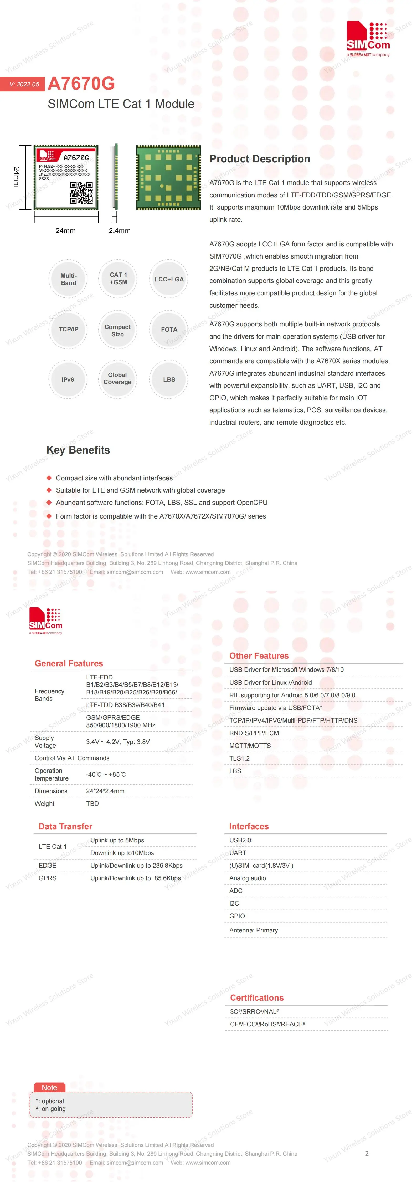 Comprar SIMCOM A7670G LTE Cat1 M.2 Módulo GPS Receptor Banda B1/B2/B3/B4/B5/B7/B8/B12/B13/B18/B19/B20/B25/B26/B28/B66/B38/B39/B40/B41