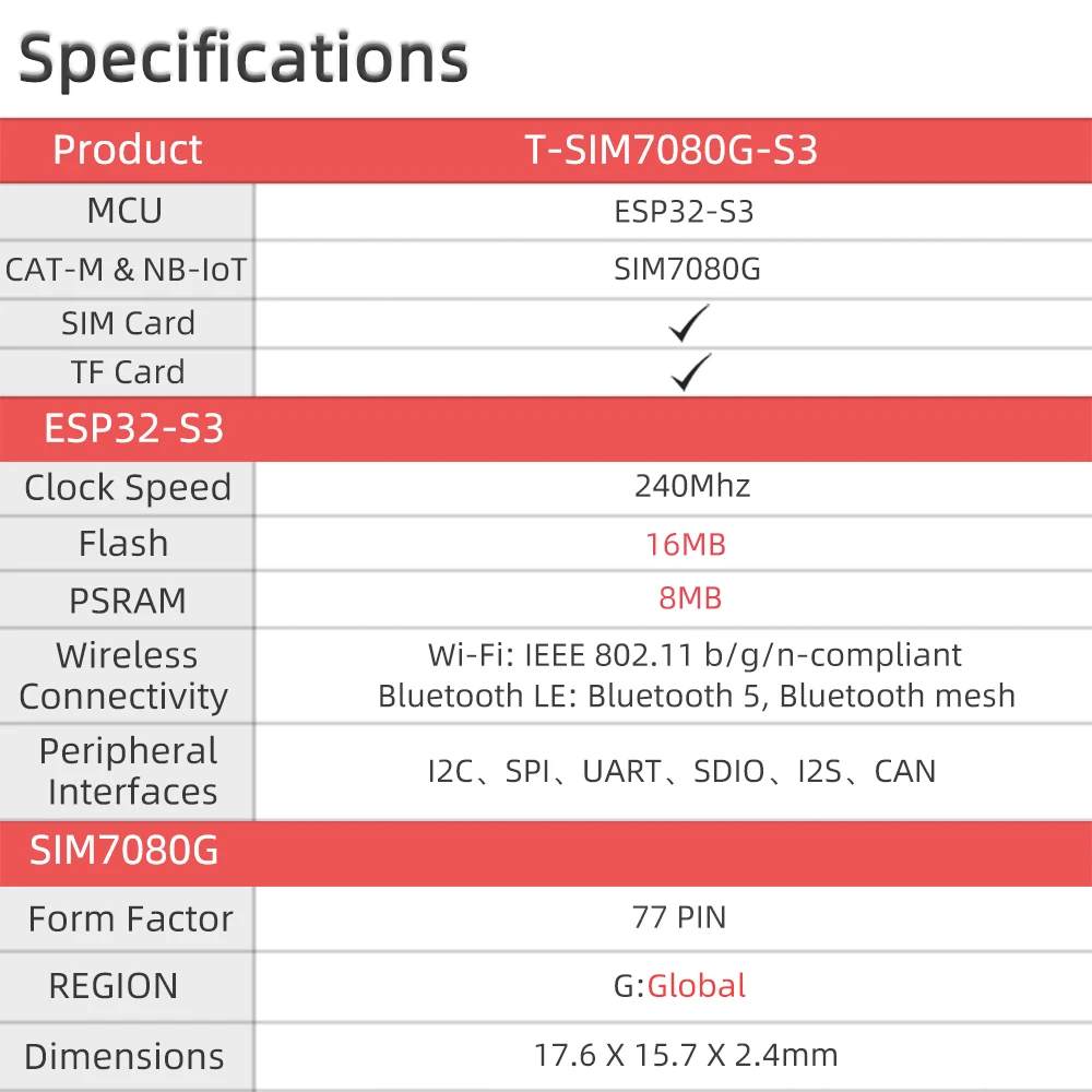 Ventajas del producto• Con el modo de ahorro de energía (PSM) y la recepción discontinua extendida (eDRX), SIM7080G puede extender la vida útil de la batería a 10 años.• Modo dual CAT-M, NB-IoT• El paquete de SIM7080G es compatible con SIM868