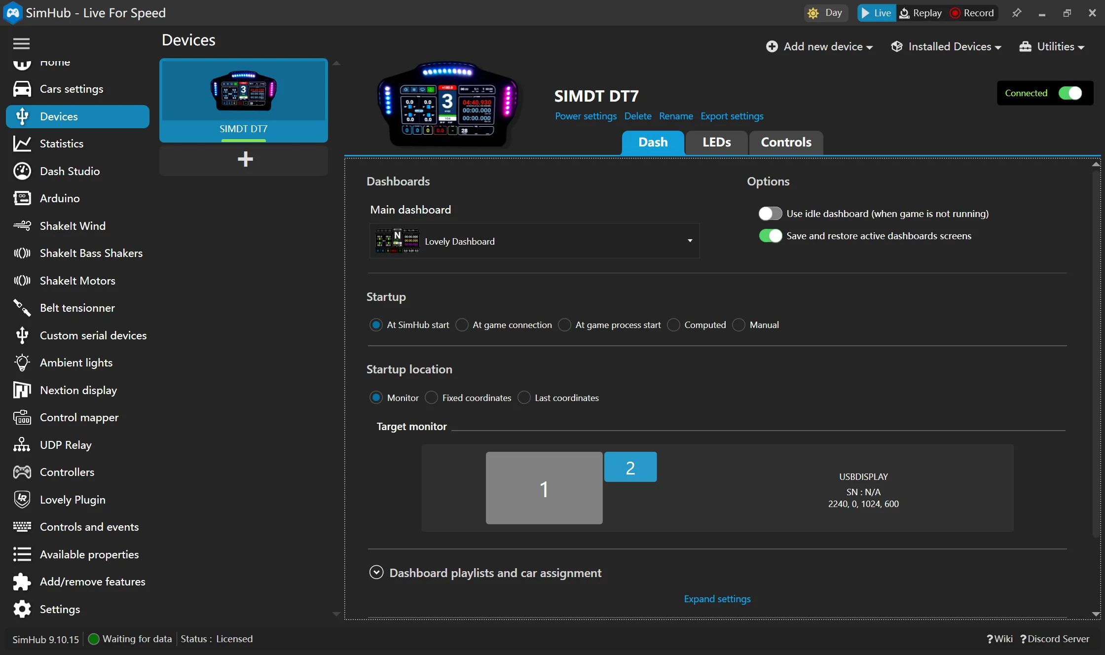 Las luces indicadoras RGB 1.22 con iluminación suave y varias funciones de iluminación se pueden personalizar a través del software SIMHUB.