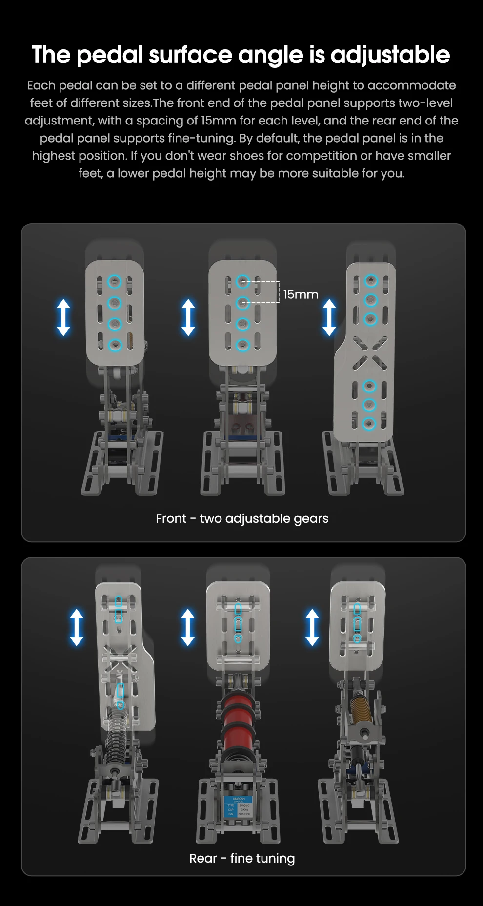 ¡Pedales realmente bonitos! Pasé de los pedales Moza SRP Lite a estos y la diferencia es una locura. Todavía me estoy acostumbrando a la celda de carga, pero es una maravilla.