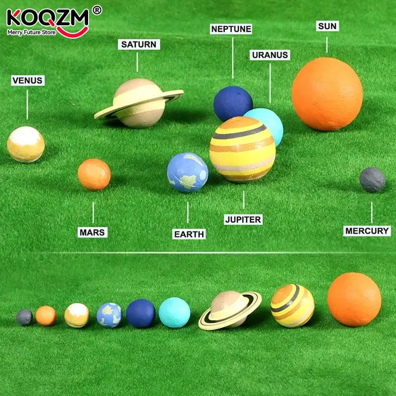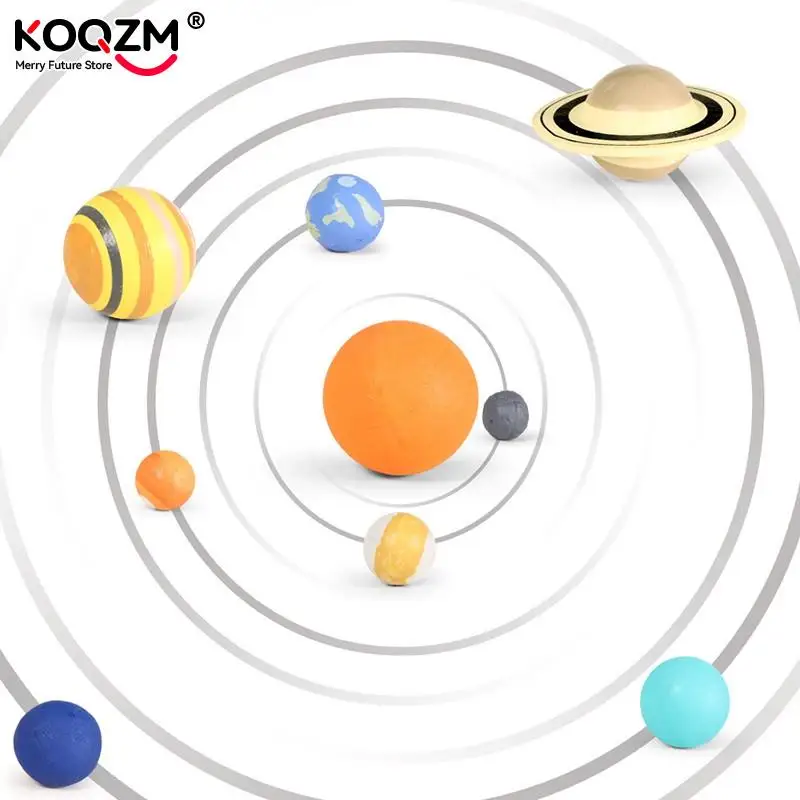 Simulación del Sistema Solar, figuras de modelo del Universo del sistema de planetas cósmicos de plástico, materiales de enseñanza, juguetes educativos de ciencia, 9 piezas