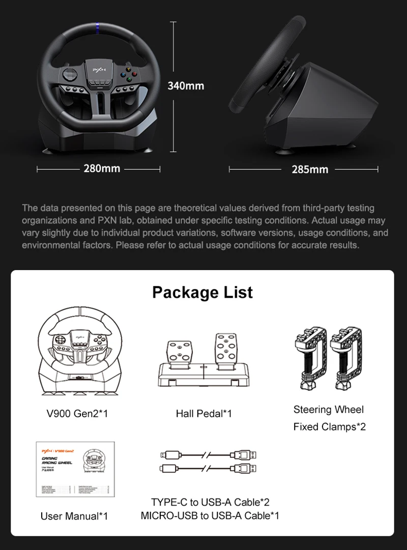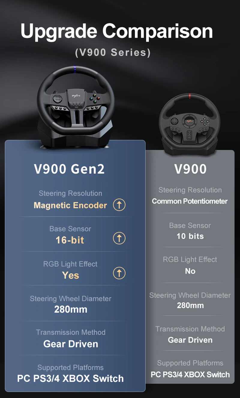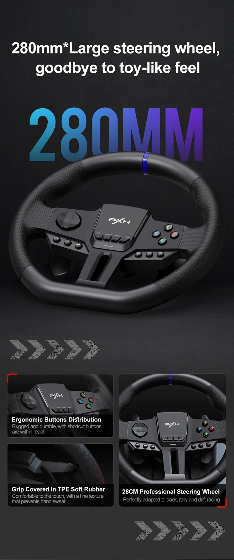 Comprar Simulador de carreras de conducción del volante para juegos PXN V900 GEN2 270 ° /900 ° Rotación para PC Switch PS3 PS4 Xbox One, Xbox Series X/S