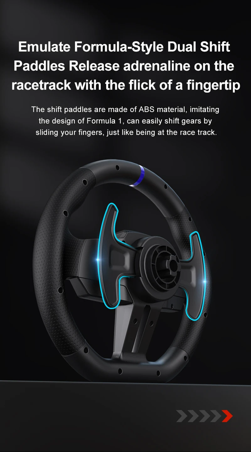 【Rueda de carreras de gran sensibilidad】Rueda de carreras con motor de doble vibración incorporada.Con la función de vibración de varios niveles, puede ajustar automáticamente la salida de vibración de acuerdo con los cambios de la escena del juego, hay 3 niveles de sensibilidad ajustables (bajo/medio/alto, diferentes sensibilidades son adecuadas para diferentes plataformas, consulte el manual para detalles), botones en el volante Puede programar la configuración según sus propias preferencias.