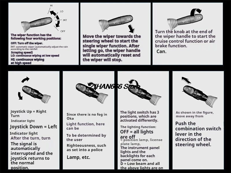 -.Un conjunto de manijas de control para luces y limpiaparabrisas de automóviles.