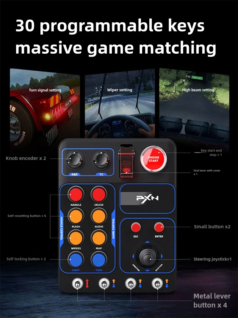 PXN CB1 Simulador de carreras Caja de control central Caja de control de llave multifuncional RGB Simulador de camión EURO personalizado Juego de carreras