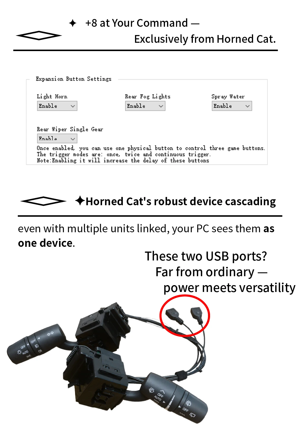 Todo está en orden, las luces direccionales y las luces funcionan correctamente. En cuanto al parpadeo de la luz alta, hay un momento en el que el botón solo funciona durante un segundo con un retraso de entrada severo. Tomé el modelo con bloqueo de encendido; al conducir en una ciudad, el bloqueo no aparecía, pero al conducir en Beam ng, el bloqueo fue detectado y funcionó como un reloj. La instalación es sencilla si sigues las instrucciones (el cable mini USB se inserta en el puerto de los limpiaparabrisas).