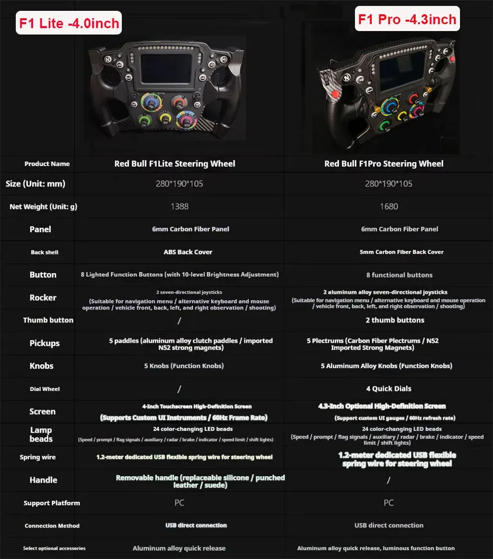 ¡Estoy impresionado por lo rápido que llegó esto hasta Australia! ¡Solo lo pedí hace unos días! ! Aún no lo he conectado ni configurado, pero ya lo he sacado de la caja. Viene muy bien empaquetado e incluye la rueda y un cable USB con conector de rosca para conectarlo al PC. La rueda es una réplica 1:1 de la rueda de F1 de Redbull. Creo que es de la temporada 2023. Es muy pesada y sólida, con una construcción de alta calidad. Todos los botones, paletas y materiales utilizados para su fabricación son de calidad A+. No puedo esperar para configurarlo. Nota: necesitará adjuntar su propio adaptador QR para que se adapte a su base de ruedas. No hay instrucciones, pero si estás comprando este volante, tendrás un PC y estarás familiarizado con la conexión USB, QR y la configuración a través de SimHub. Me pondré en contacto con el vendedor si tengo algún problema con ello. Gracias, se ve hermoso.