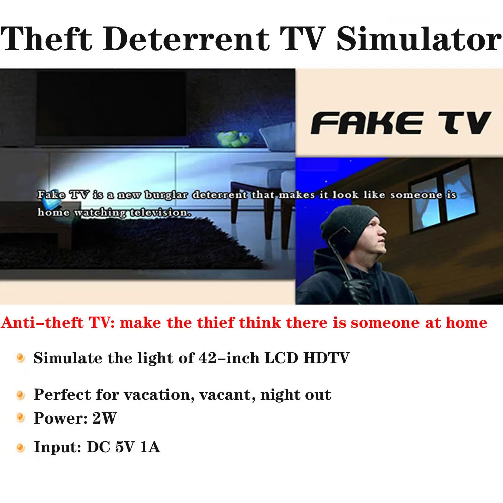 Este simulador de TV falso LED se utiliza para dejar un elemento disuasorio a intrusos/ ladrones con la ilusión de que alguien mira televisión en casa.