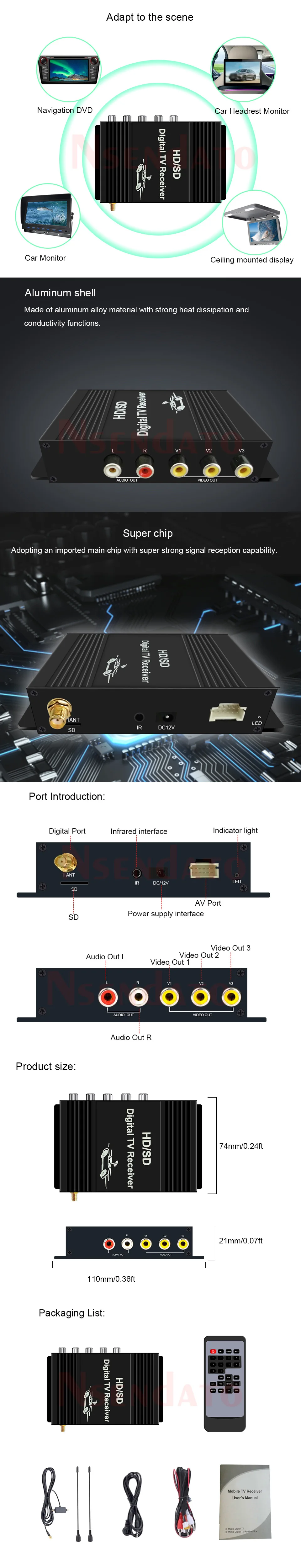 Sintonizador receptor de TV digital ATSC HD para coche con antena para EE. UU. México Canadá