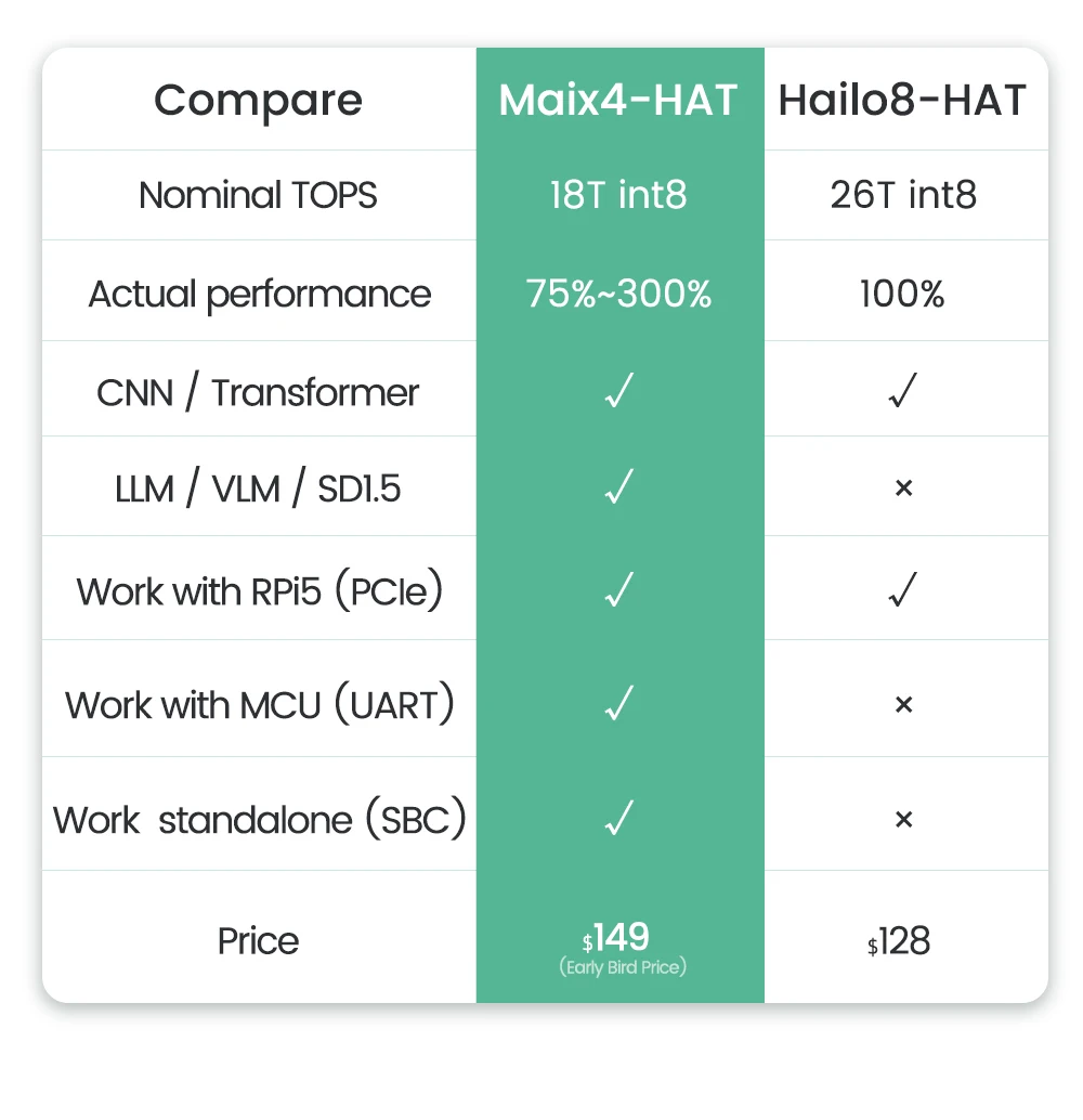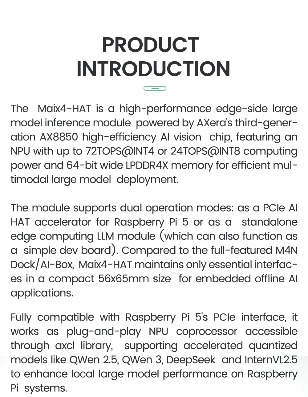 sipeed Maix4-HAT RPI5 AI HAT Beat Hailo8 18T AX650 Multimodal LLM deepseek