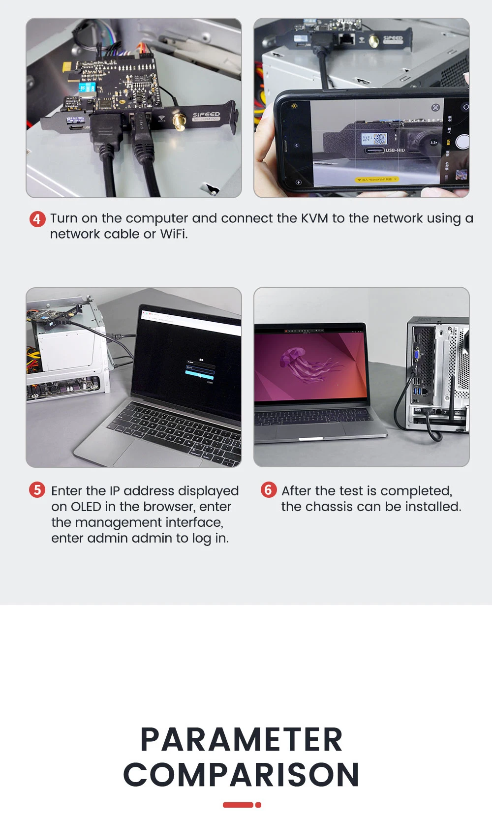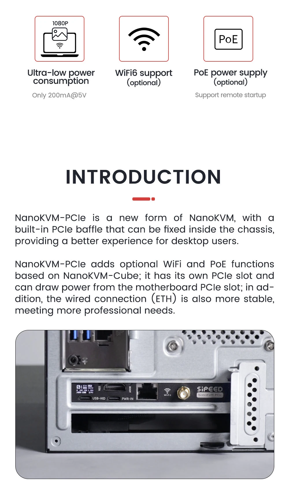 Funciona perfectamente, tal como se esperaba. Recomiendo ver la reseña de Jeff Geerling en YouTube, que me ayudó a decidir qué KVM comprar. Los únicos problemas (menores) que he encontrado hasta ahora: El cable HDMI incluido en la caja es un poco corto para mi caso. (Solo mide 30 cm, pero necesitaba 50 cm), y el plano de la ranura es un poco delgado/suave (se dobla al insertar el HDMI). Además, agradecería que hubiera una cubierta para el conector PCIe, así no tendría que preocuparme de que toque algo que no debería cuando no esté conectado a nada (lo estoy alimentando a través del conector USB interno, que funciona perfectamente). Aparte de eso, es perfecto en mi opinión. Excelente software, excelente diseño, simplemente perfecto. Wiki/Documentos también es muy útil. 10/10 lo recomendaría.