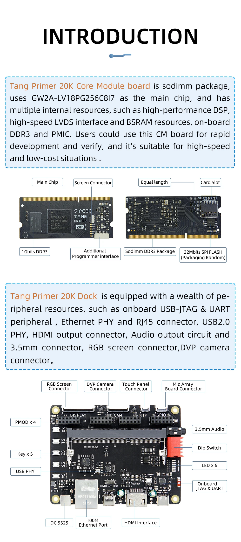Comprar Sipeed Tang Primer 20K GOWIN GW2A FPGA GoAI Core Board Sistema mínimo