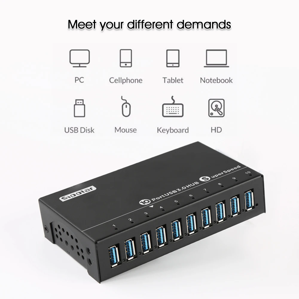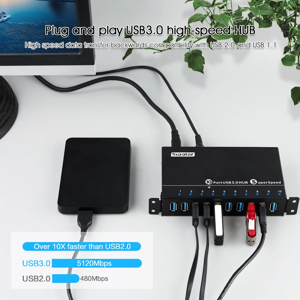 Comprar Sipolar A-103 Ultra alta velocidad 10 puertos usb 3,0 hub multi cargador hub divisor para accesorio de computadora teléfono móvil tableta minero