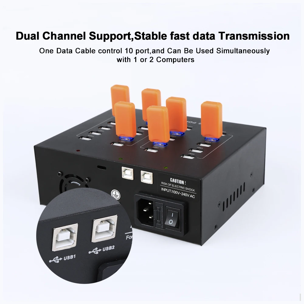 1. Concentrador USB de transferencia de carga y sincronización de datos de 20 puertos de Grado Industrial, compatible con la conexión de dispositivos de 1, al mismo tiempo. Plug and play.