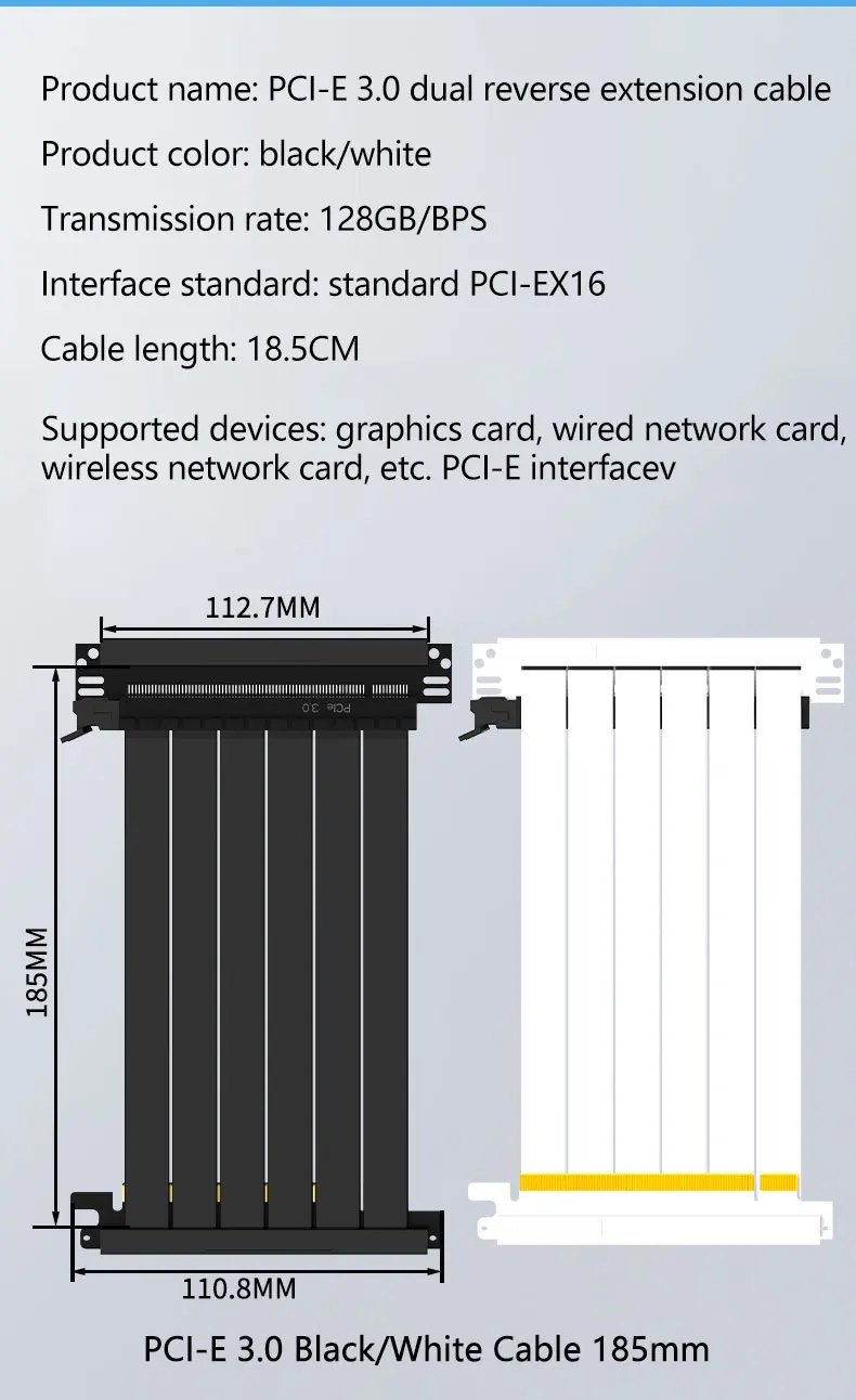 Sirena ascendente 180 ° Cable de extensión de tarjeta gráfica PCI-E3.0/4.0/185mm de largo/interferencia antielectromagnética/para tarjetas gráficas de computadora