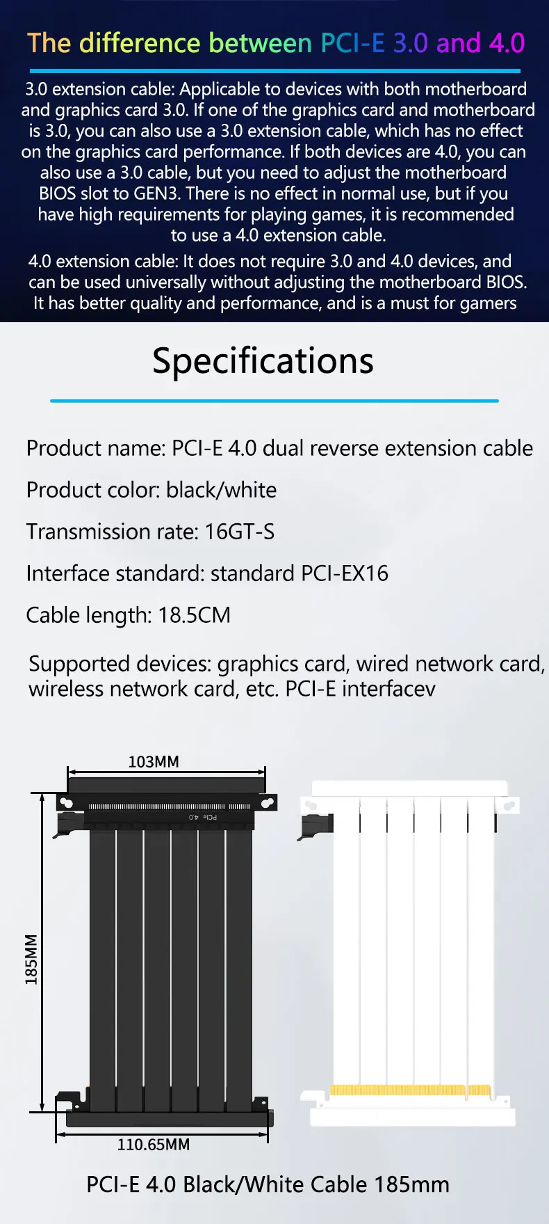Comprar Sirena ascendente 180 ° Cable de extensión de tarjeta gráfica PCI-E3.0/4.0/185mm de largo/interferencia antielectromagnética/para tarjetas gráficas de computadora