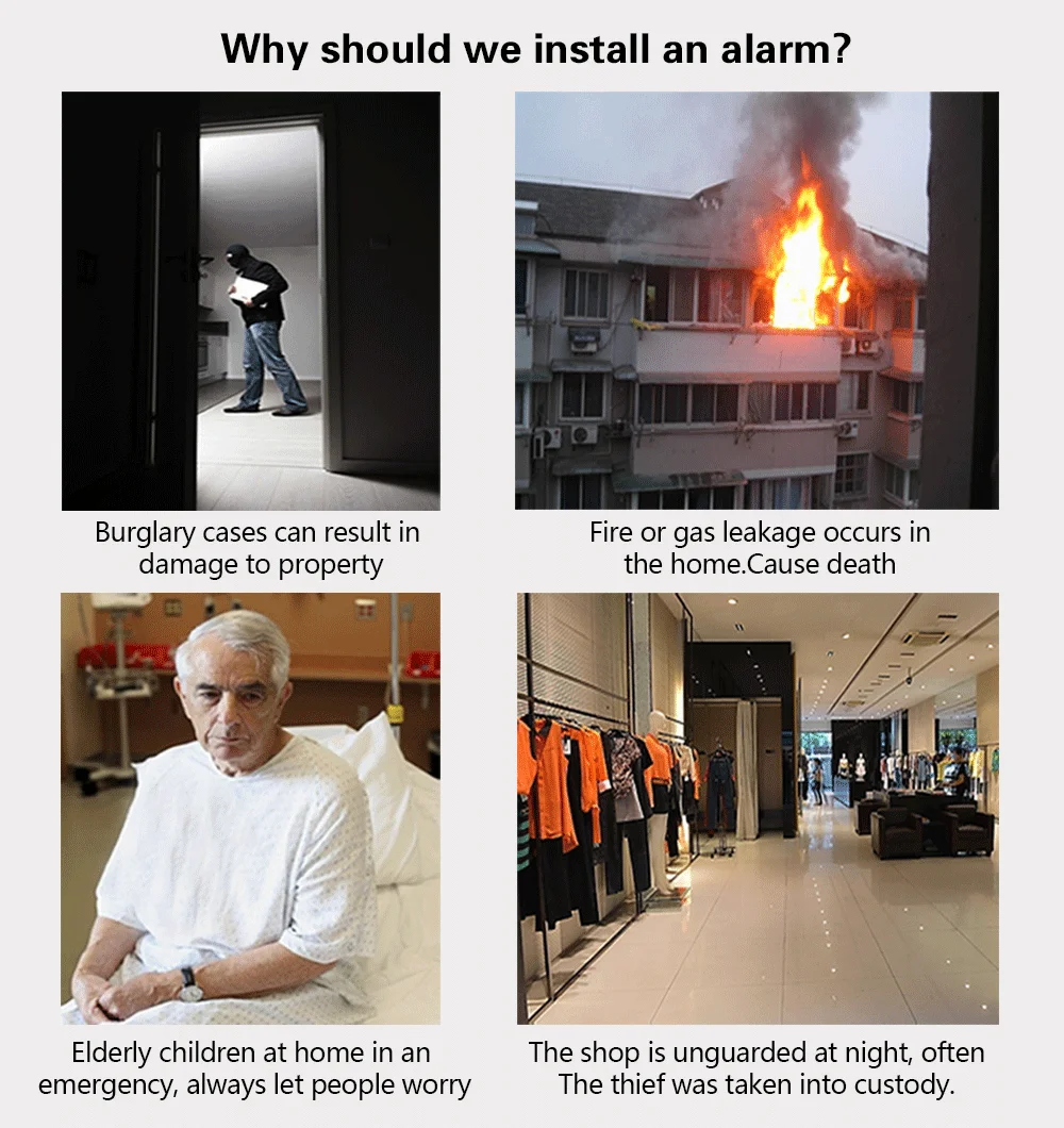Sonido de alarma de 90 db, 8 luces de alarma LED, emite sonidos y luces, disuade eficazmente a los ladrones.