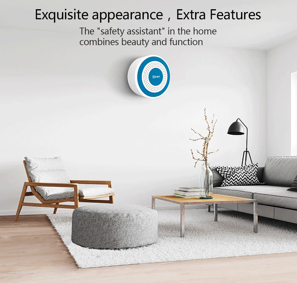 Sirena estroboscópica inalámbrica para interiores de 433 mhz, sirena de luz y sonido, Mini sirena estroboscópica independiente de 100dB, sistema de alarma de sonido de seguridad para el hogar