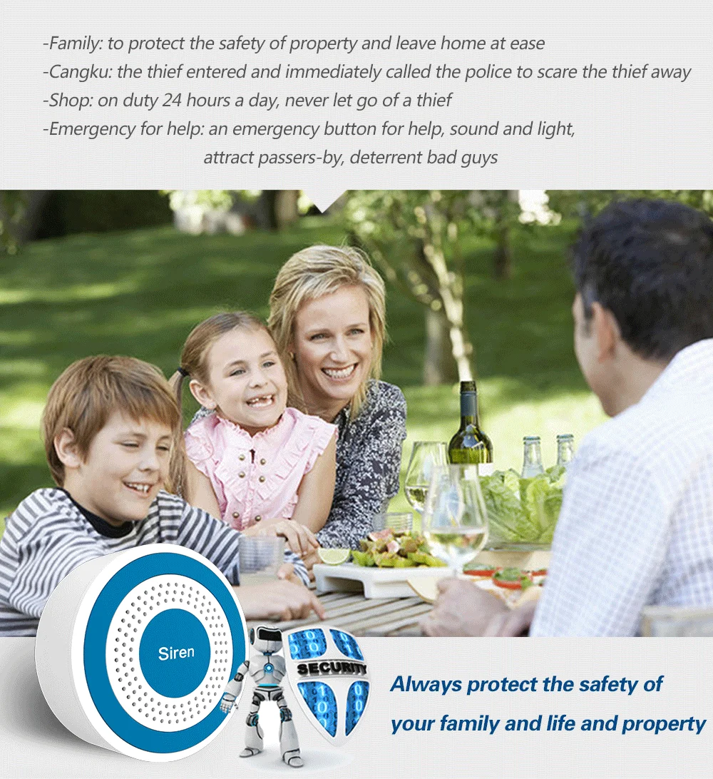 Puede funcionar como sonido inalámbrico y sirena luminosa para cualquier host de alarma inalámbrico a 433 MHZ.