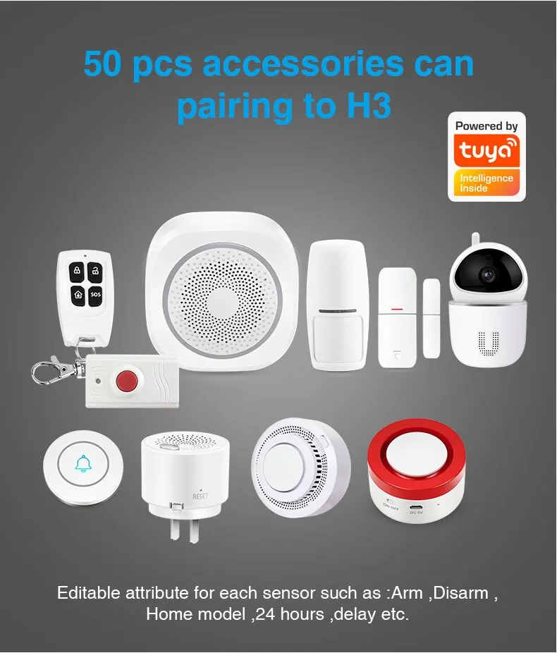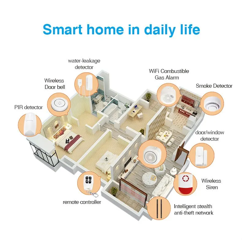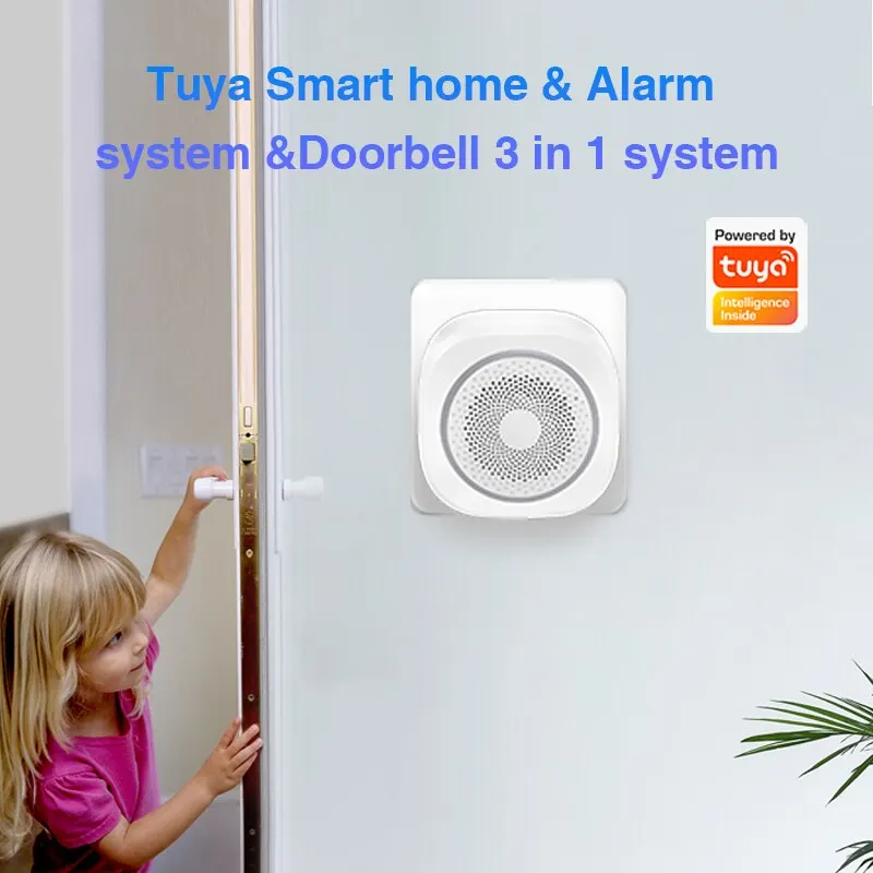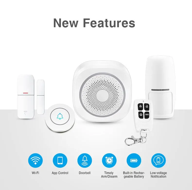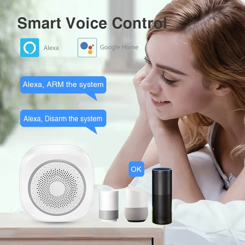 Comprar Sistema de alarma inteligente para el hogar, dispositivo de seguridad con WIFI, Sensor de movimiento y puerta, funciona con Alexa y Google