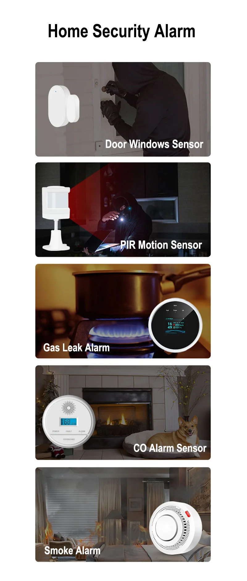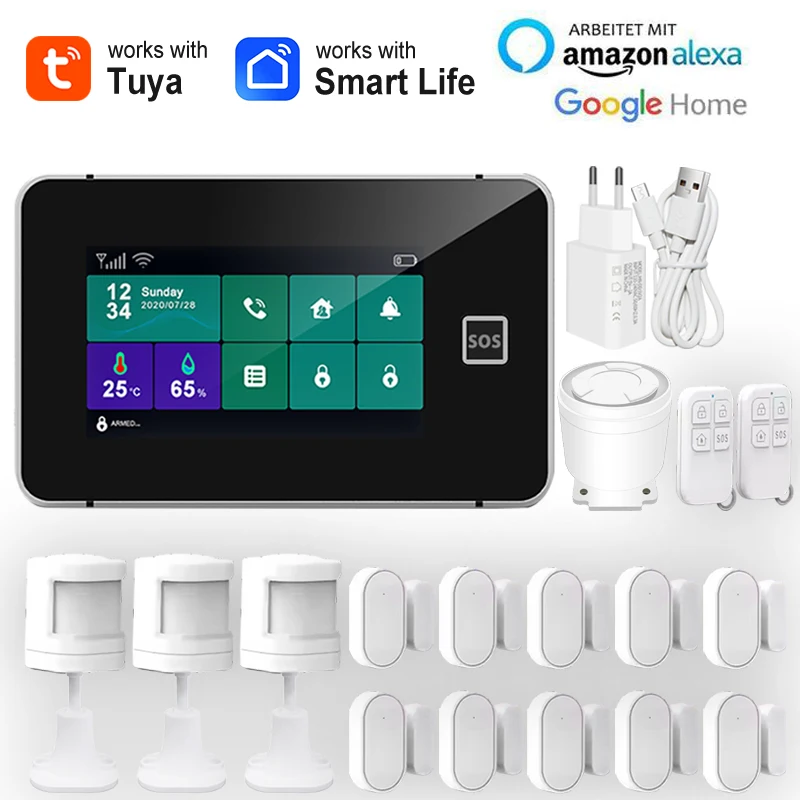 Sistema de alarma WiFi GSM, Kit de alarma antirrobo de seguridad para el hogar, Sensor de movimiento de puerta inalámbrico de 433MHz, Control por aplicación Smart Life