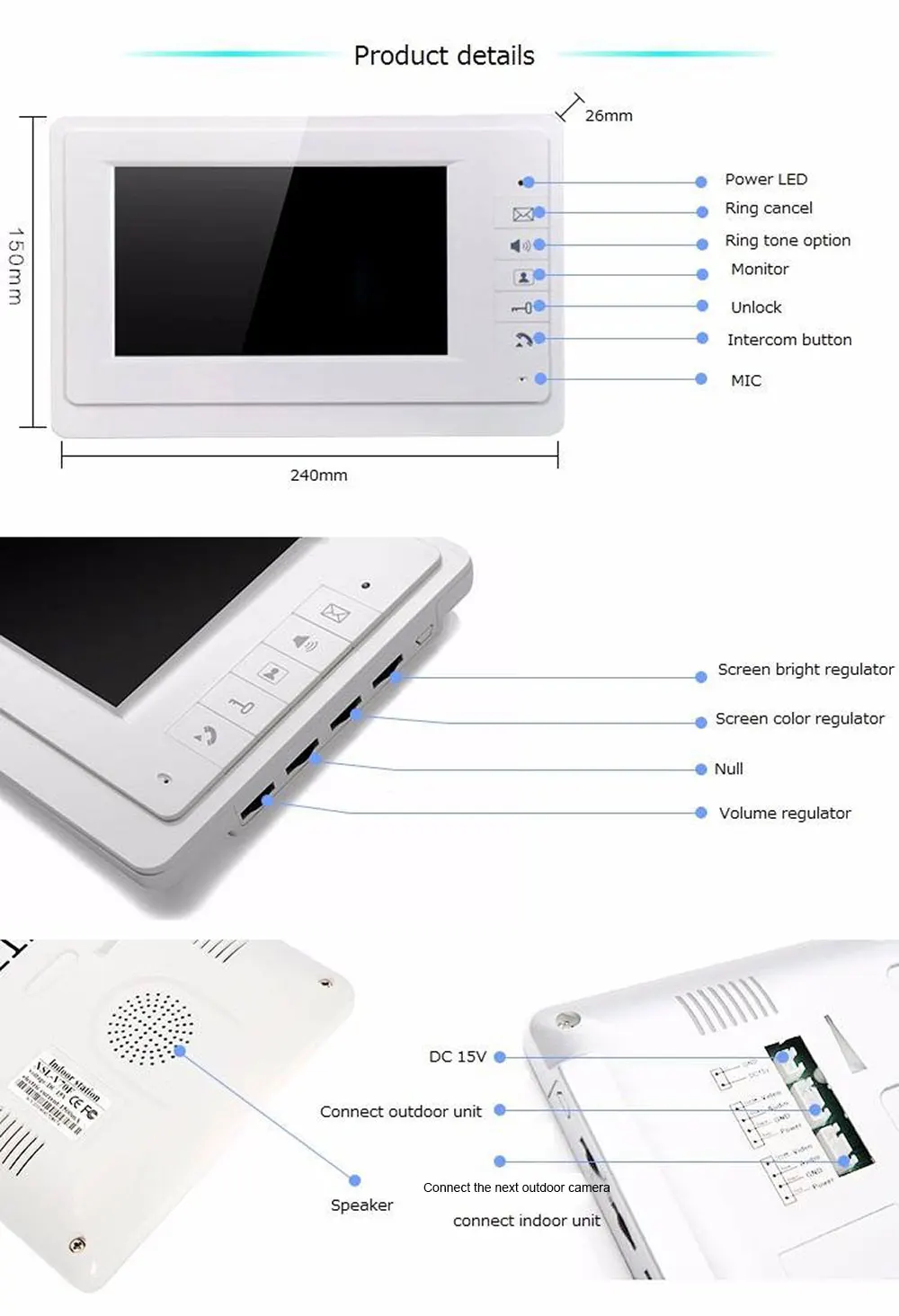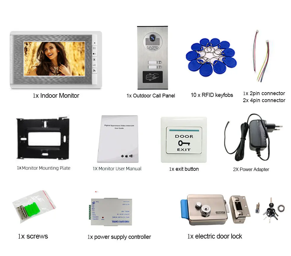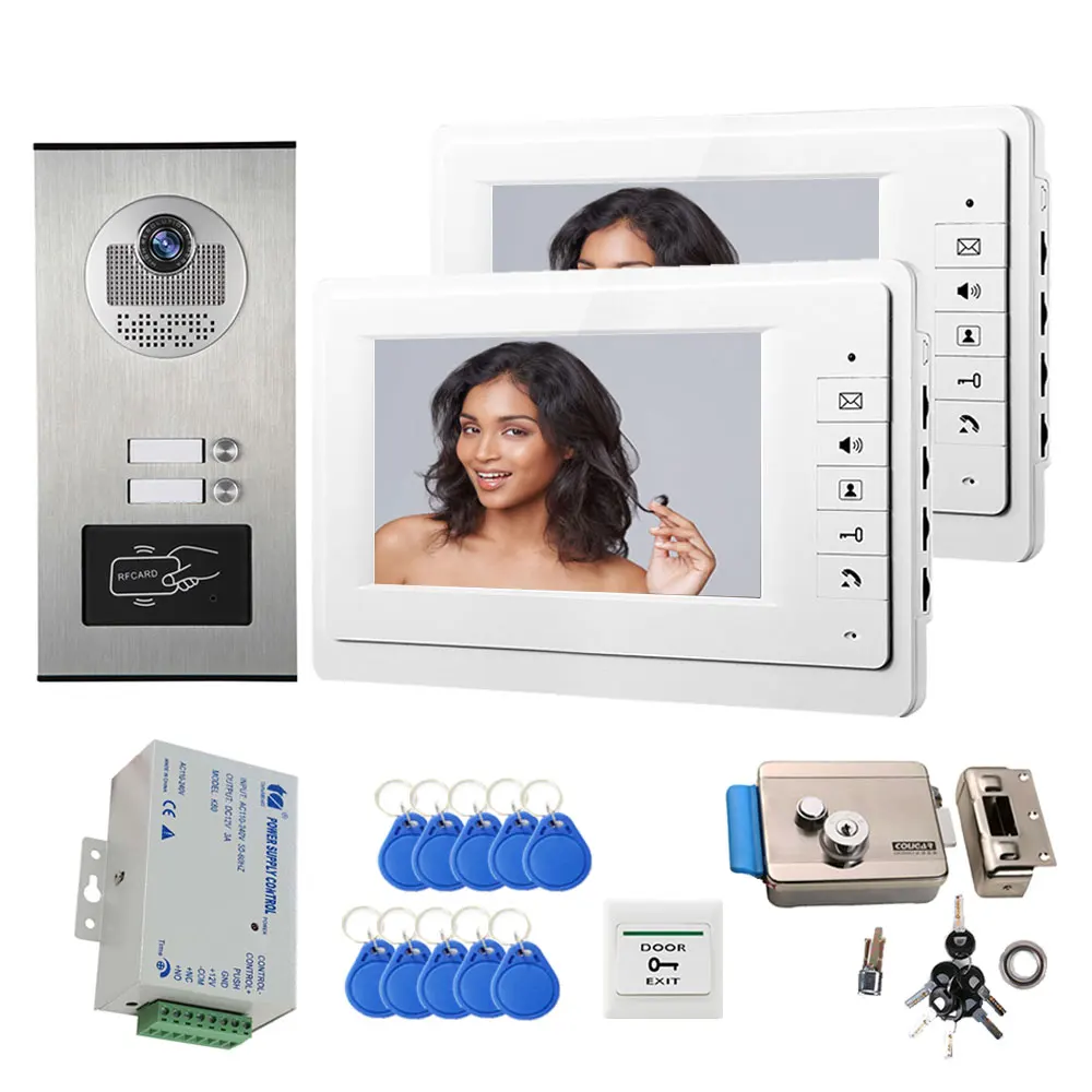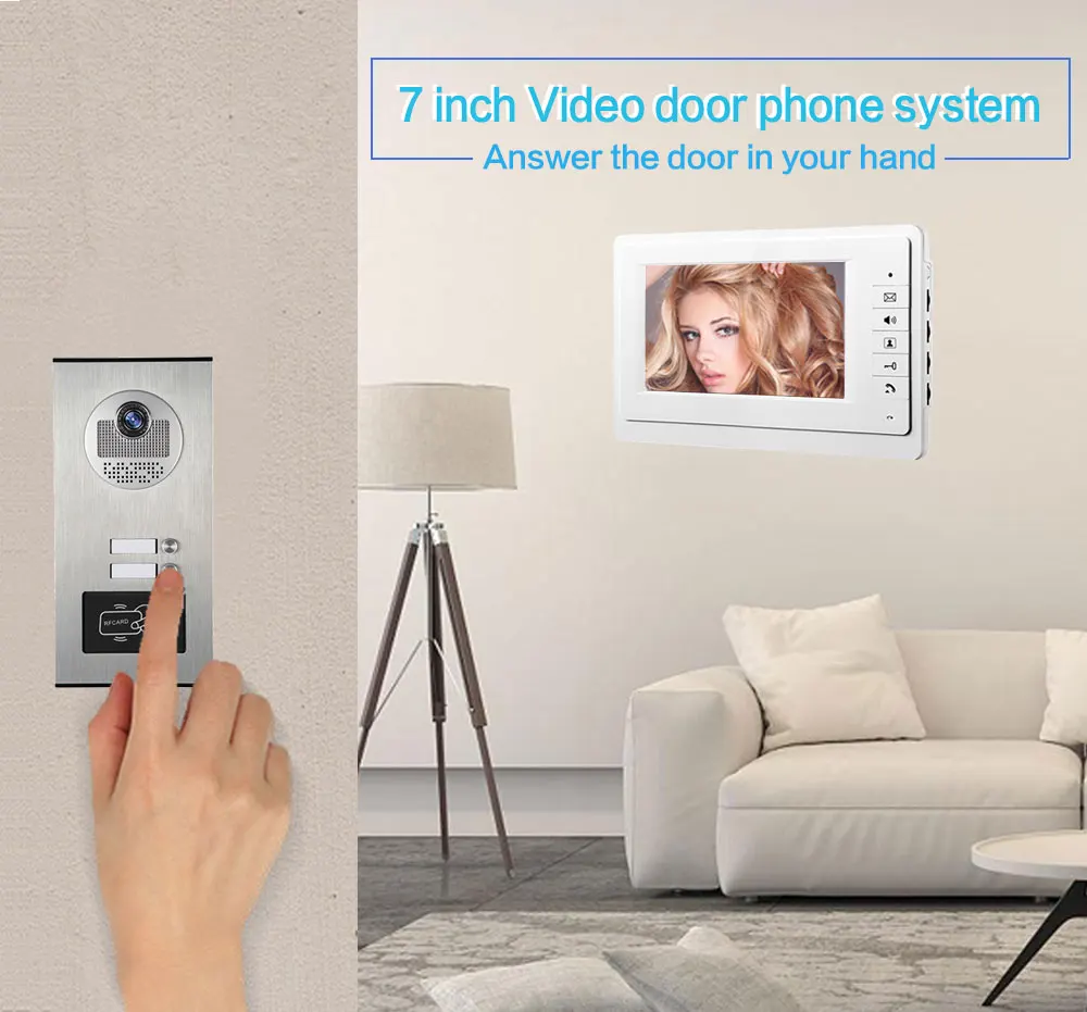 Comprar Sistema de cámara de Control de acceso RFID, videoportero a Color de 7 pulgadas, intercomunicador para 2/3/4 unidades, varios apartamentos