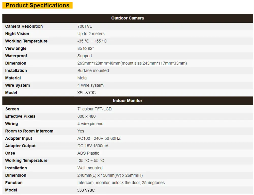 1. Intercomunicador de doble vía manos libres y monitor interior de 25 tonos de llamada