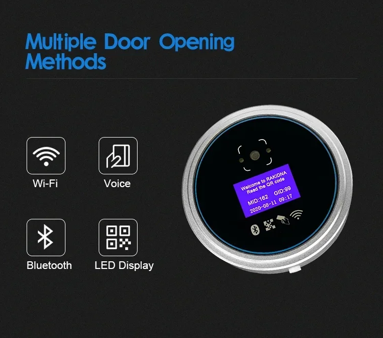 Pantalla LED en vivo Escáner de código QR Control de acceso a puerta Cerradura de puerta inteligente de código de barras 2d con IC para hotel