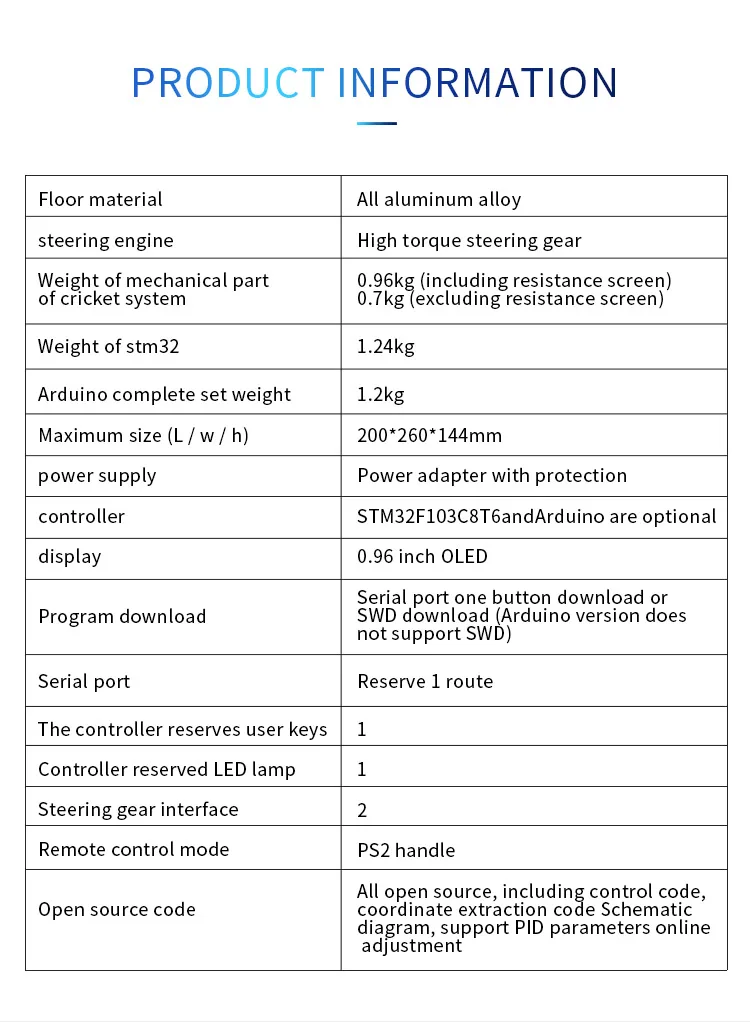 Las versiones STM32 y Arduino no incluyen adaptador de corriente (12V 5A)