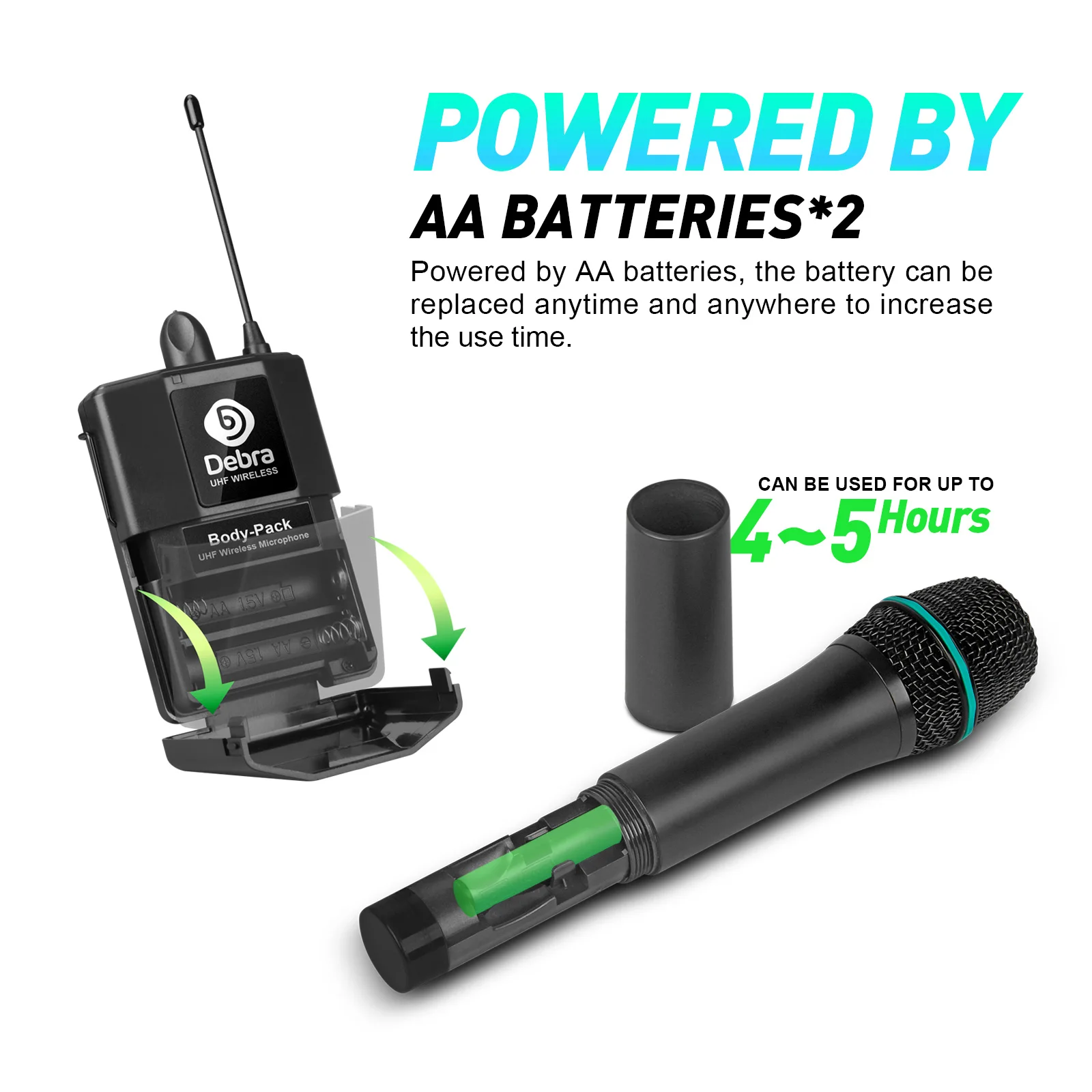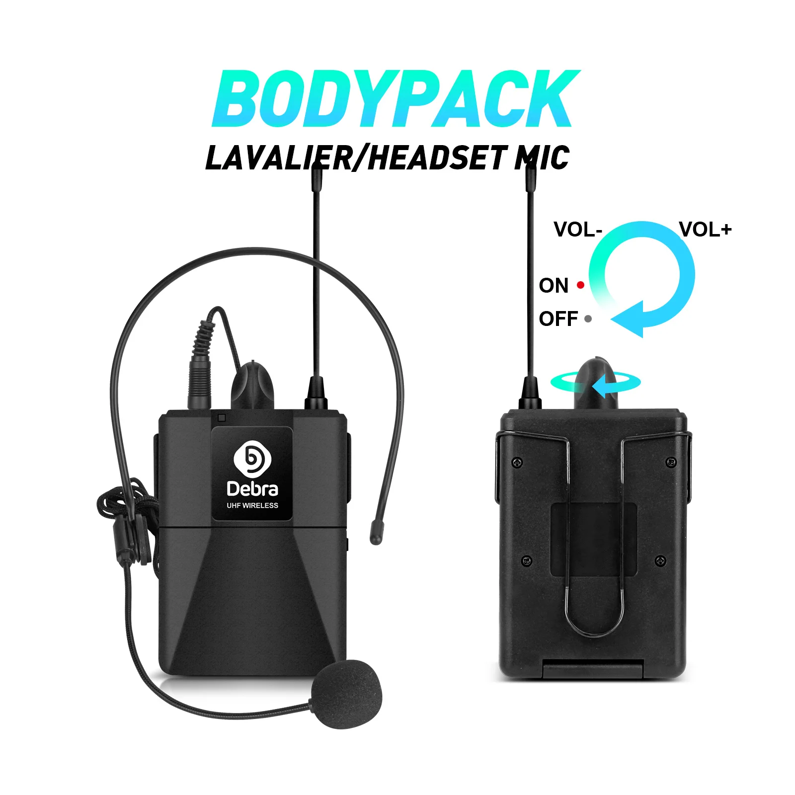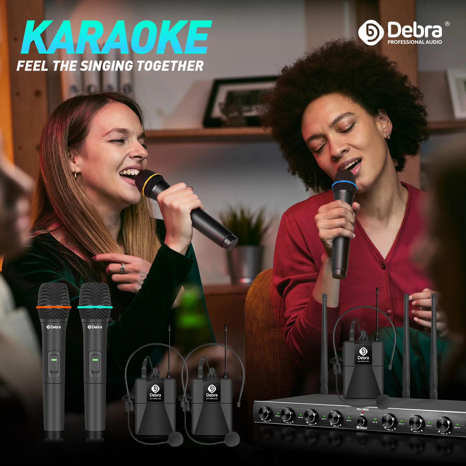 Sistema de micrófono inalámbrico Debra Audio Pro UHF de 2/4/8 canales con micrófonos inalámbricos con auriculares Lavalier, receptor de metal, ideal para fiestas en la iglesia de Karaoke