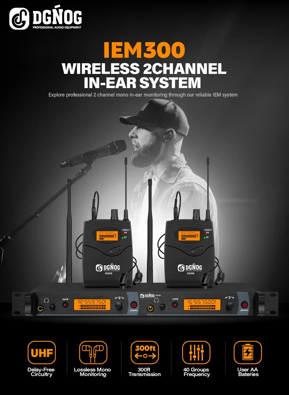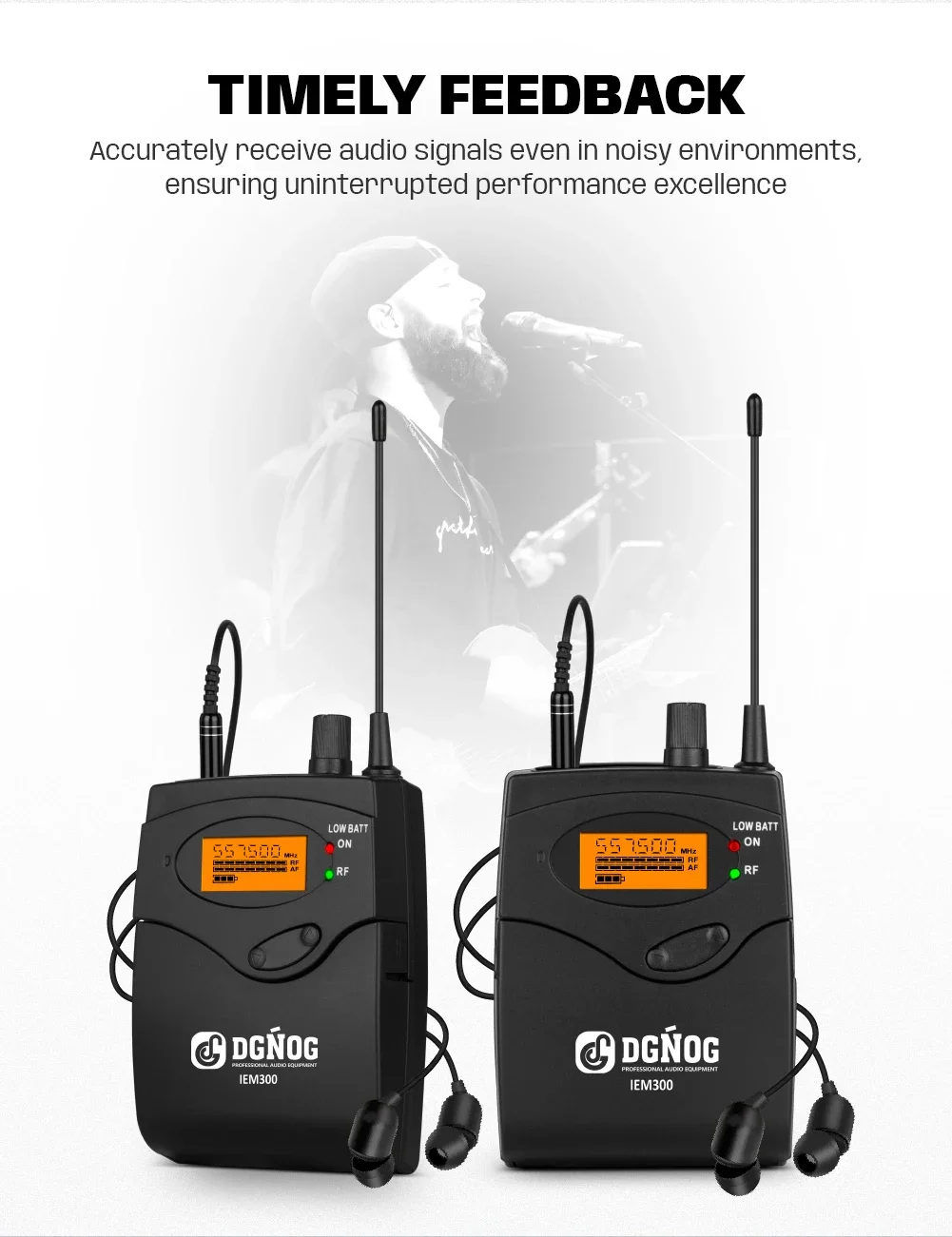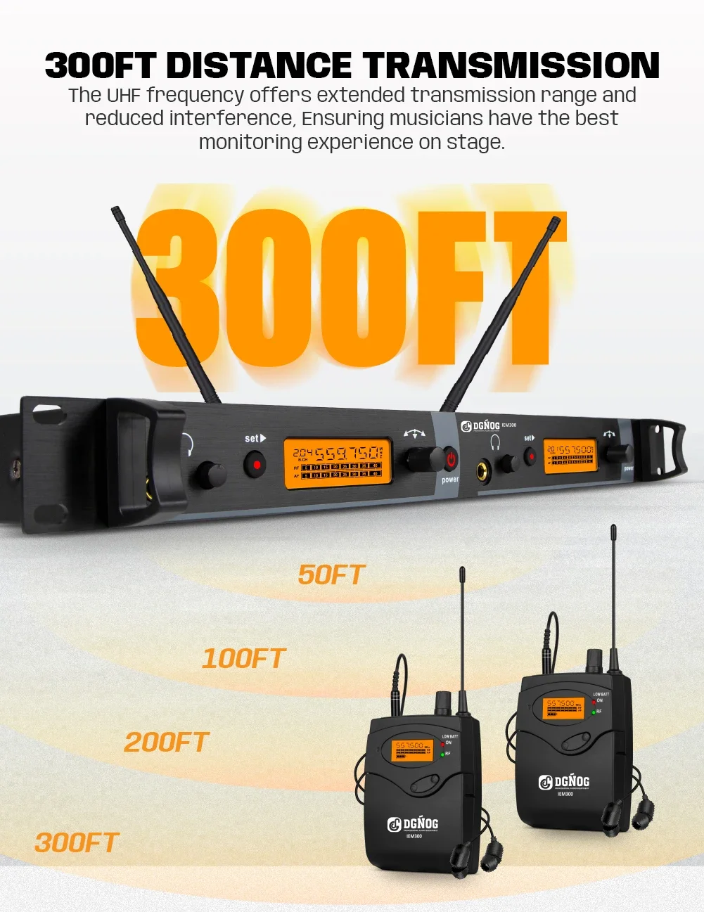 【Impresionante alcance inalámbrico y cobertura de frecuencia】- Con un alcance inalámbrico de hasta 300 pies, nuestro sistema receptor y monitor intrauditivo DGNOG IEM300 ofrece un monitoreo de escenario confiable.Operando dentro del rango de frecuencia de 550 MHz a 580 MHz, mejora la relación señal-ruido y el rango dinámico, brindando una reproducción de sonido impecable con una interferencia mínima.