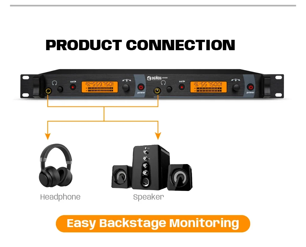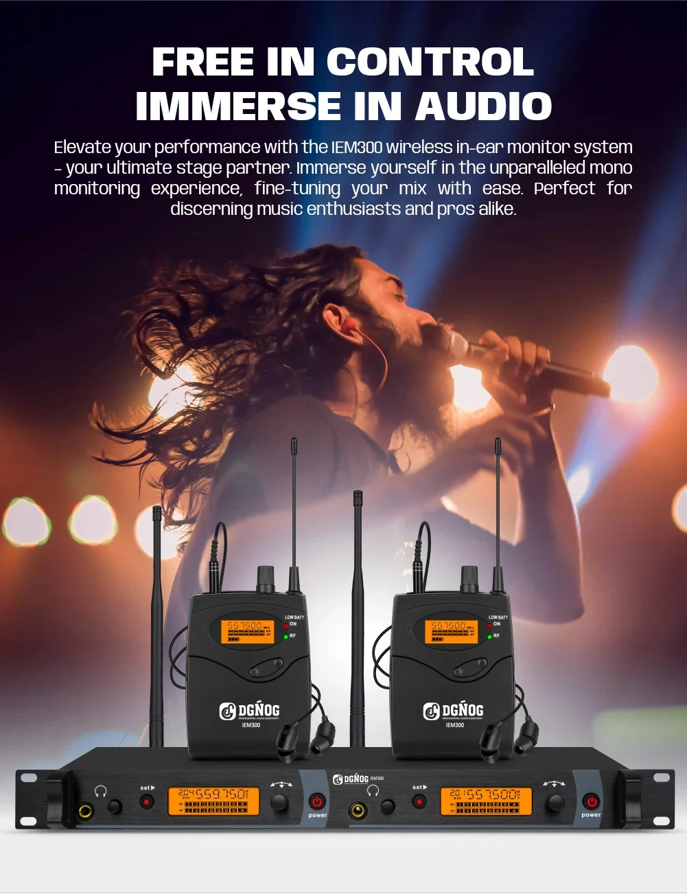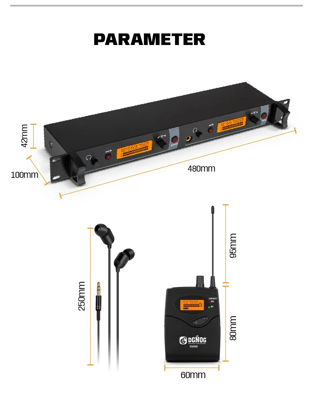 【Impresionante alcance inalámbrico y cobertura de frecuencia】- Con un alcance inalámbrico de hasta 300 pies, nuestro sistema receptor y monitor intrauditivo DGNOG IEM300 ofrece un monitoreo de escenario confiable.Operando dentro del rango de frecuencia de 550 MHz a 580 MHz, mejora la relación señal-ruido y el rango dinámico, brindando una reproducción de sonido impecable con una interferencia mínima.