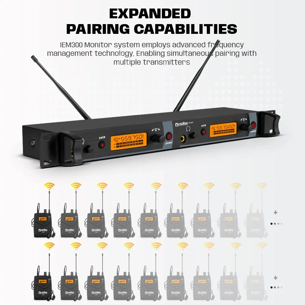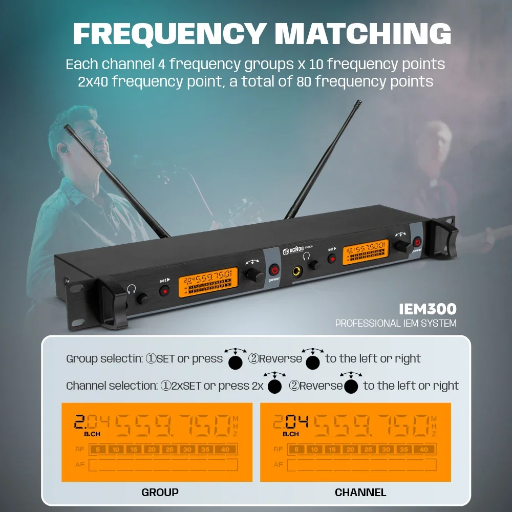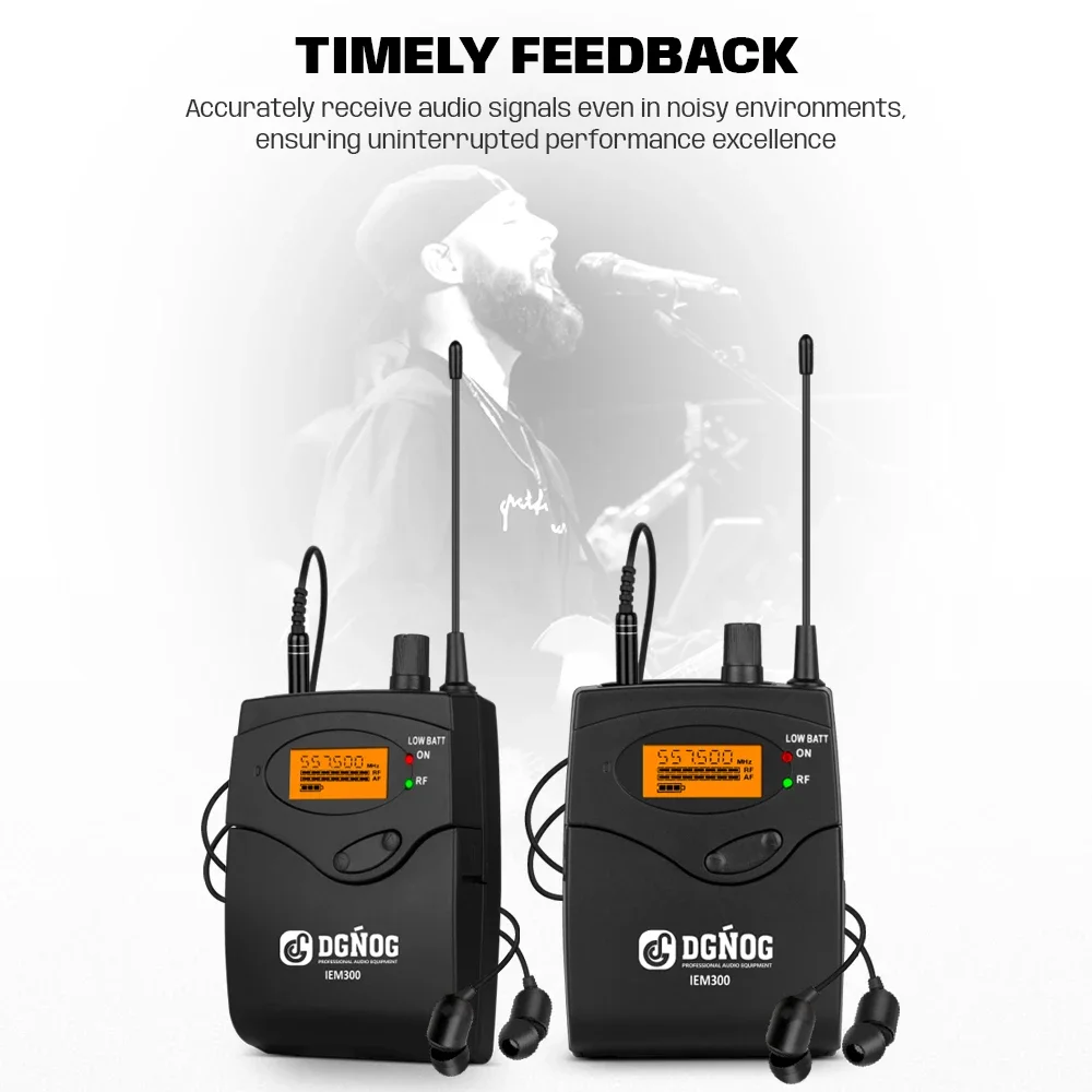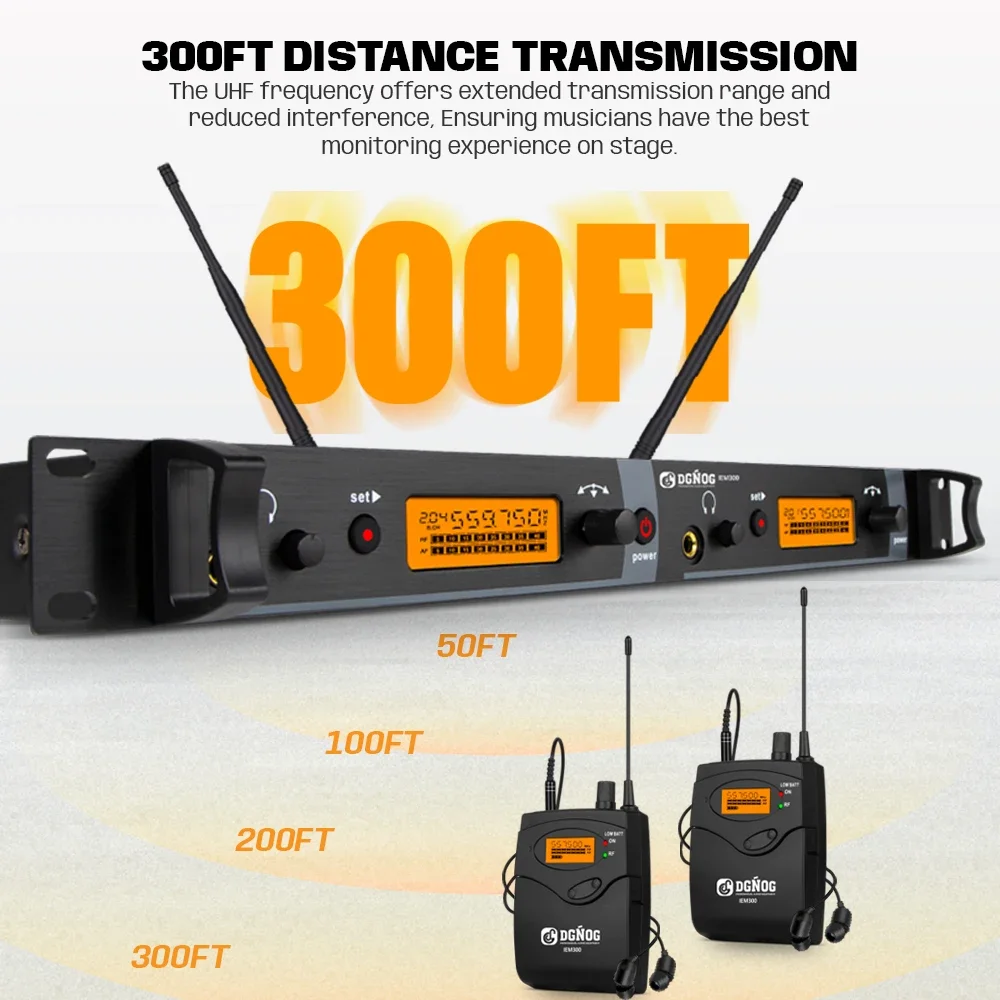 【Impresionante alcance inalámbrico y cobertura de frecuencia】- Con un alcance inalámbrico de hasta 300 pies, nuestro sistema receptor y monitor intrauditivo DGNOG IEM300 ofrece un monitoreo de escenario confiable.Operando dentro del rango de frecuencia de 550 MHz a 580 MHz, mejora la relación señal-ruido y el rango dinámico, brindando una reproducción de sonido impecable con una interferencia mínima.