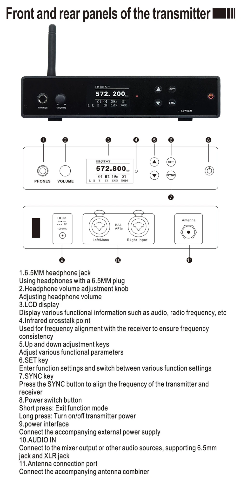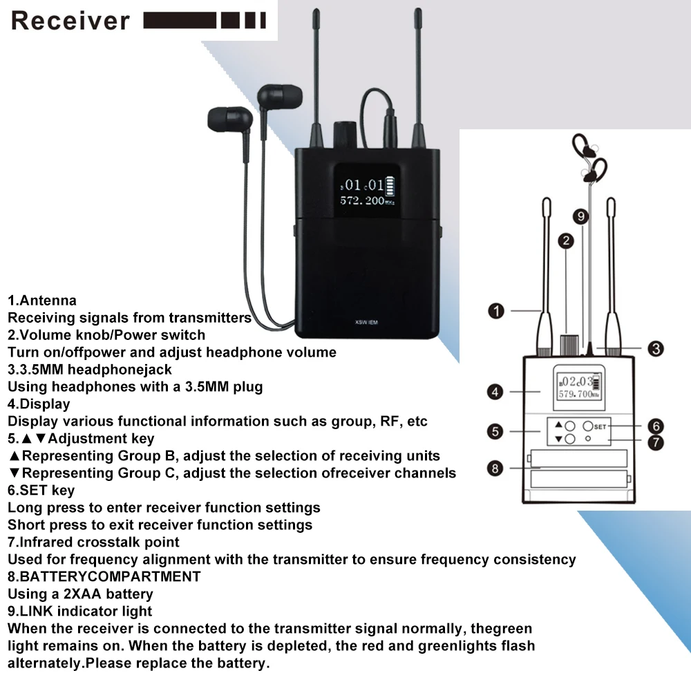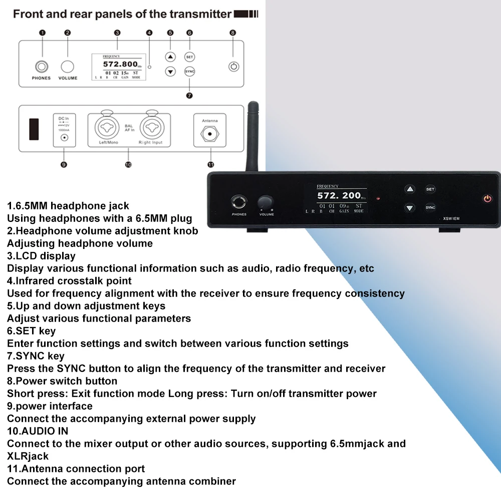 Sistema de monitoreo intrauditivo XSW, monitores intrauditivos inalámbricos personales estéreo para canto de banda, procesador Digital DSP de escenario Audio