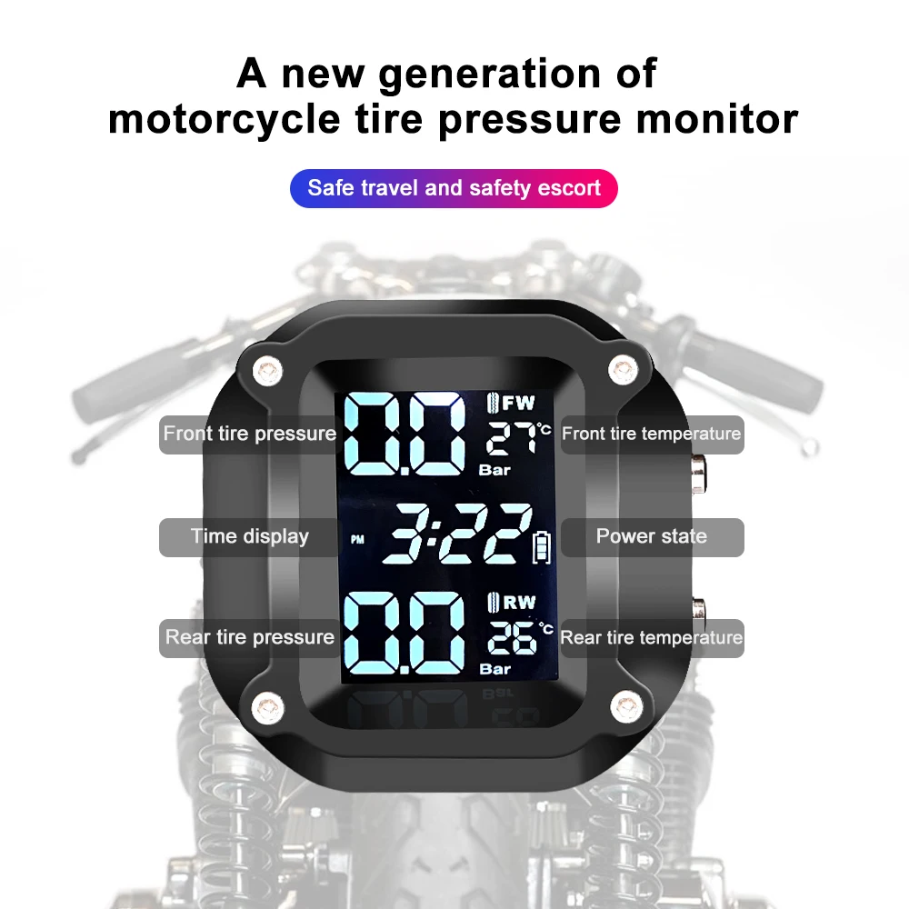 Sistema de control de presión de neumáticos de motocicleta TPMS con 2 sensores externos, Kit de alarma de neumáticos inteligente, accesorios universales para motocicletas