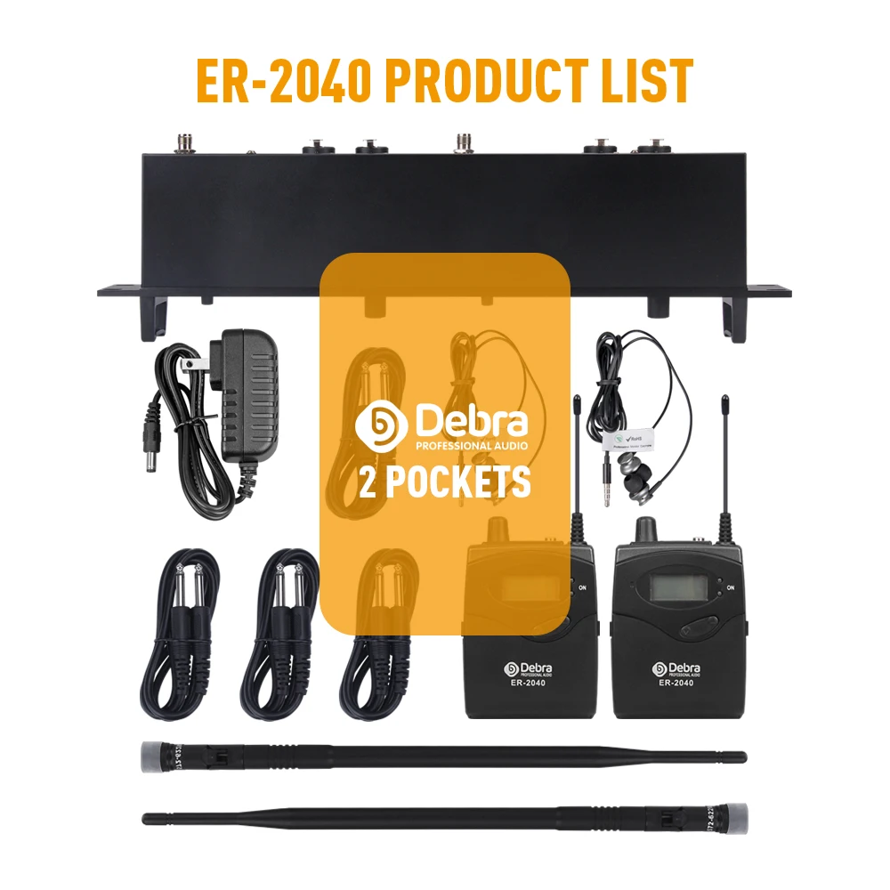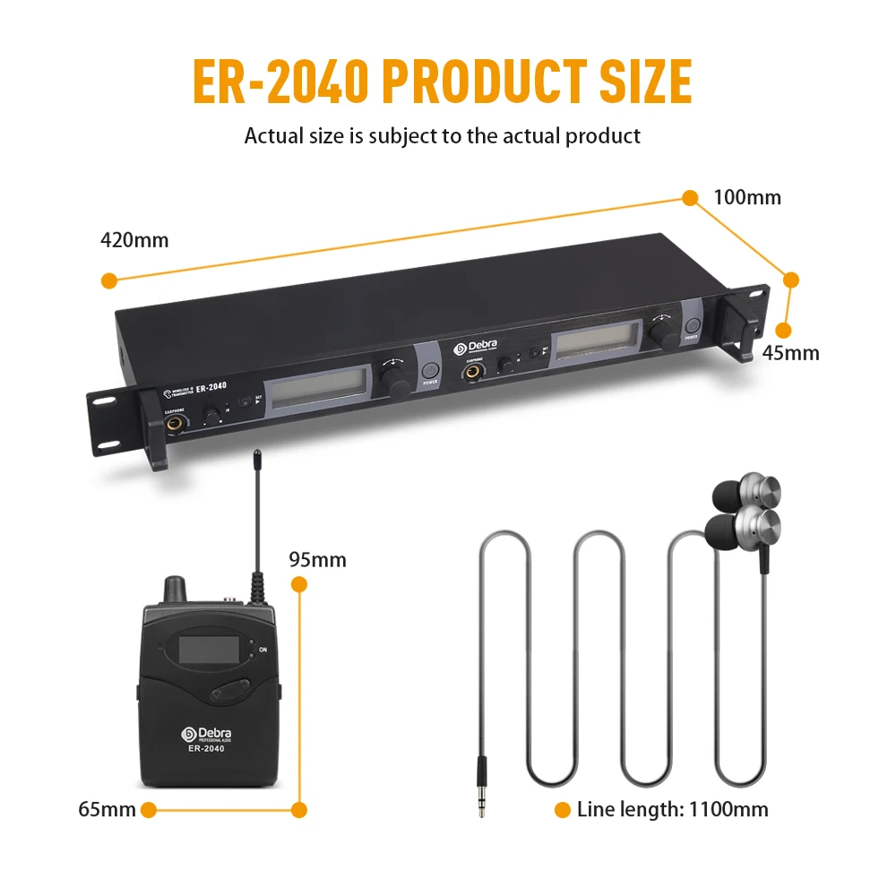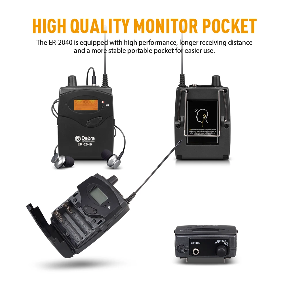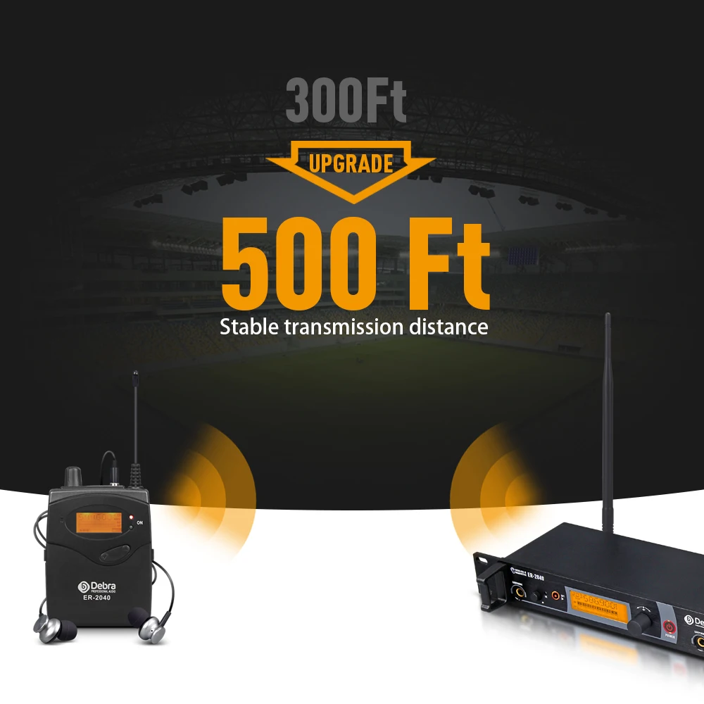 Sistema de monitorización inalámbrico intrauditivo Debra UHF IEM ER-2040 con distancia de recepción de 180 m para puesta en escena, canto al aire libre
