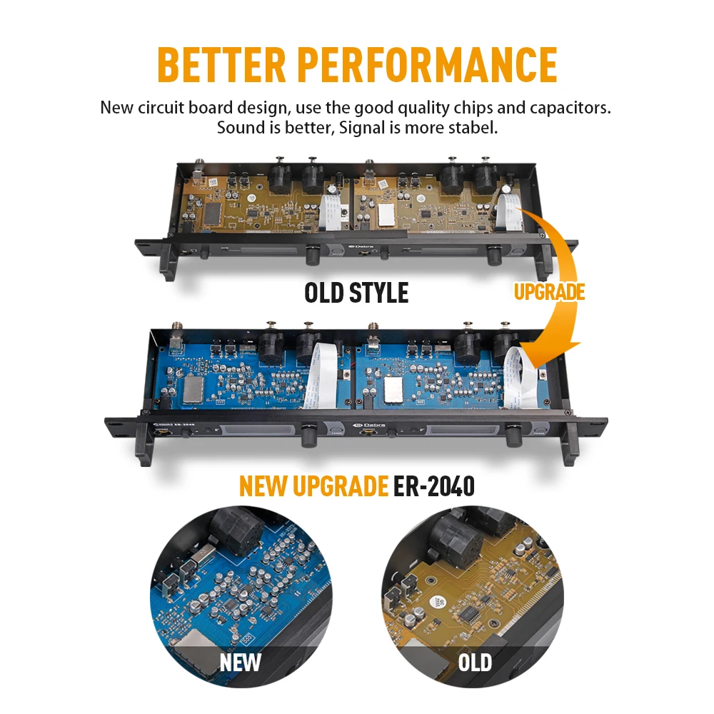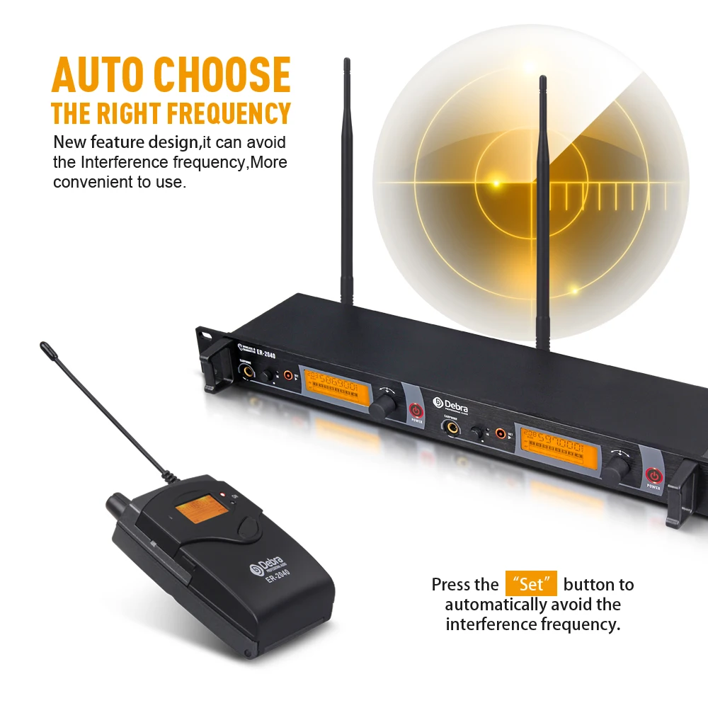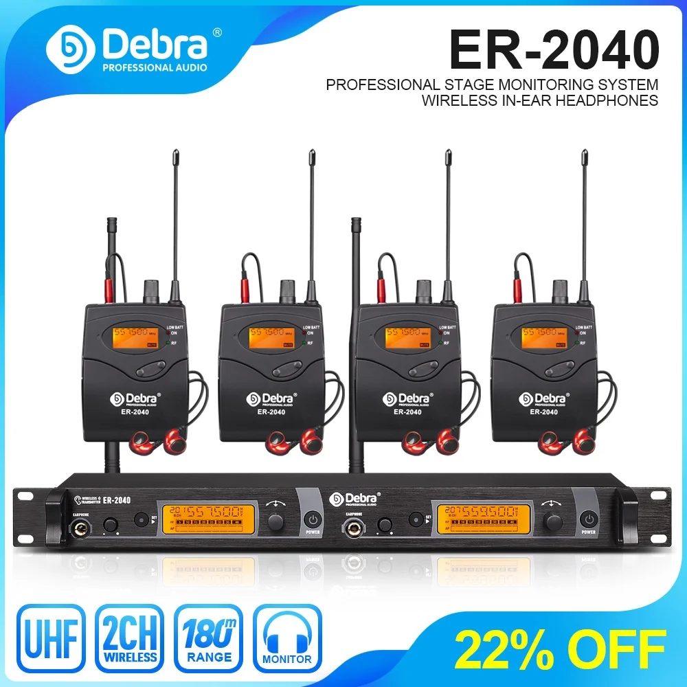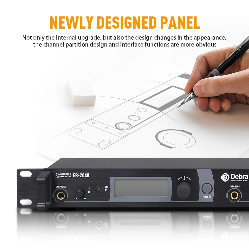 Sistema de monitorización inalámbrico intrauditivo Debra UHF IEM ER-2040 con distancia de recepción de 180 m para puesta en escena, canto al aire libre