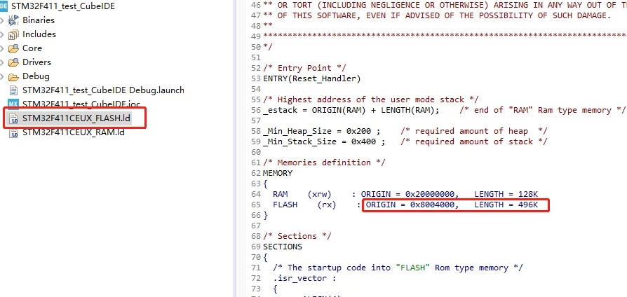 APP en el gestor de arranque consulte stm32f401 _ test _ APP 0x8004000. archivo zip.