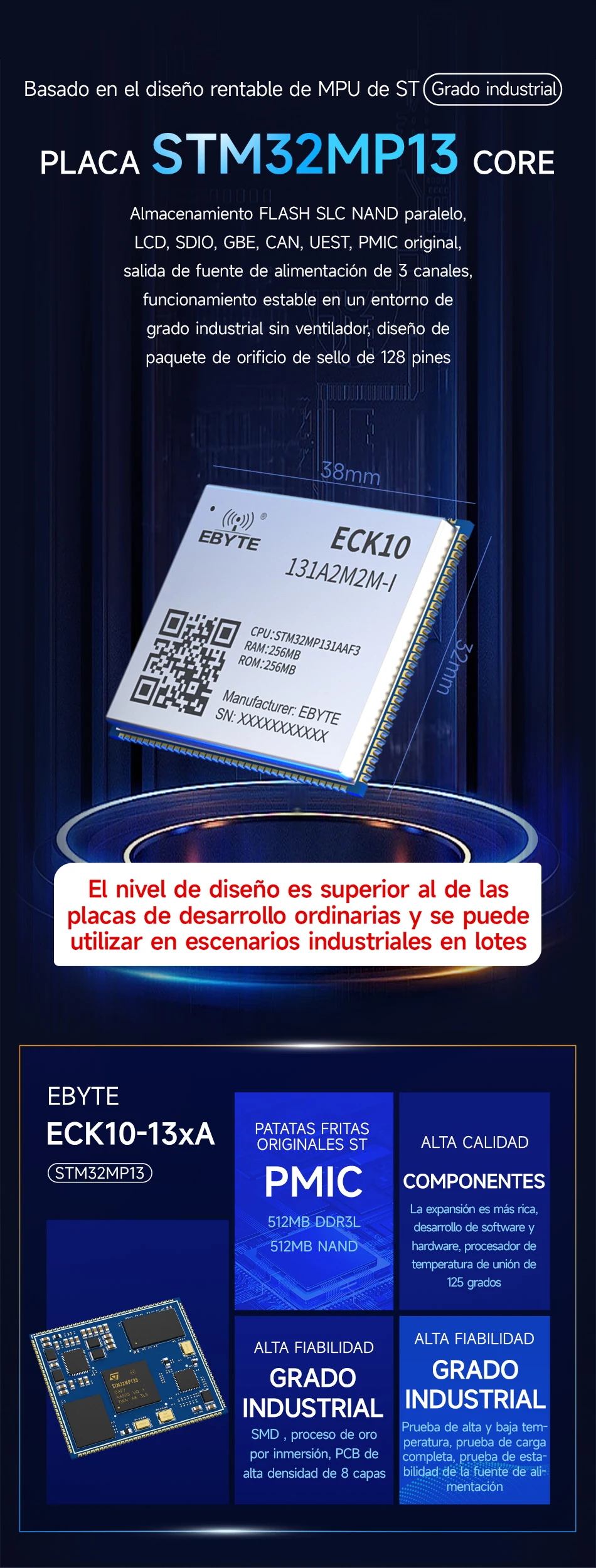 Sistema STM32MP13 a bordo ARM cortex A7 Linux COJXU ECK10 serie 256MB/512MB DDR3 FLASH placa central de grado Industrial